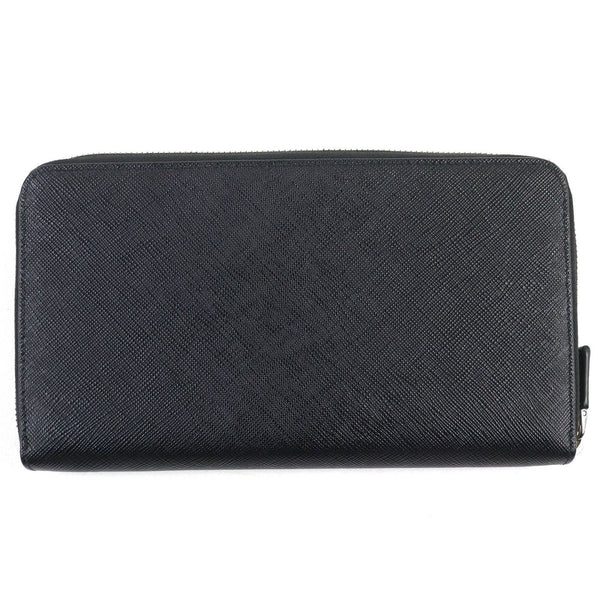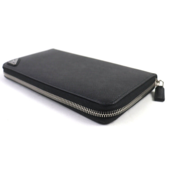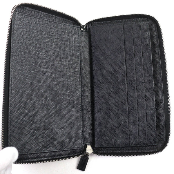 PRADA 2ML188 Saffiano Leather Triangle Logo Round Zip Long Wallet, Black, Made in Italy, Men\'s