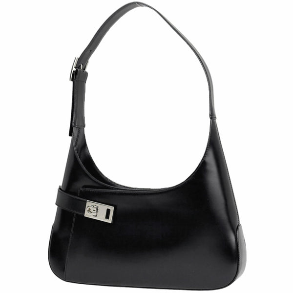Salvatore Ferragamo Gancini Shoulder Bag, One-Shoulder Leather, Black, Women\'s