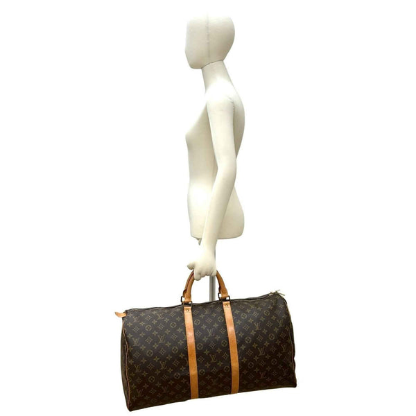 LOUIS VUITTON Louis Vuitton Keepall 55 Monogram Lederen Boston Tas Bruin g62-7