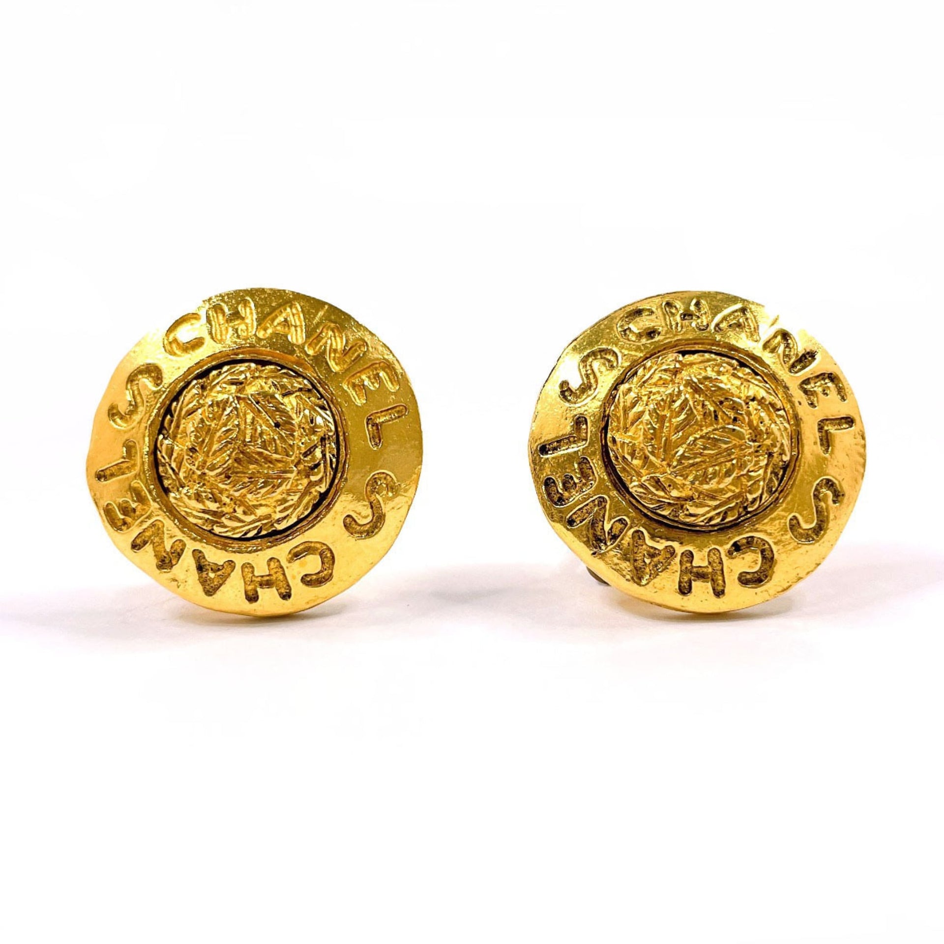 CHANEL Logo Vintage Earrings, Metal, Gold, Women\'s