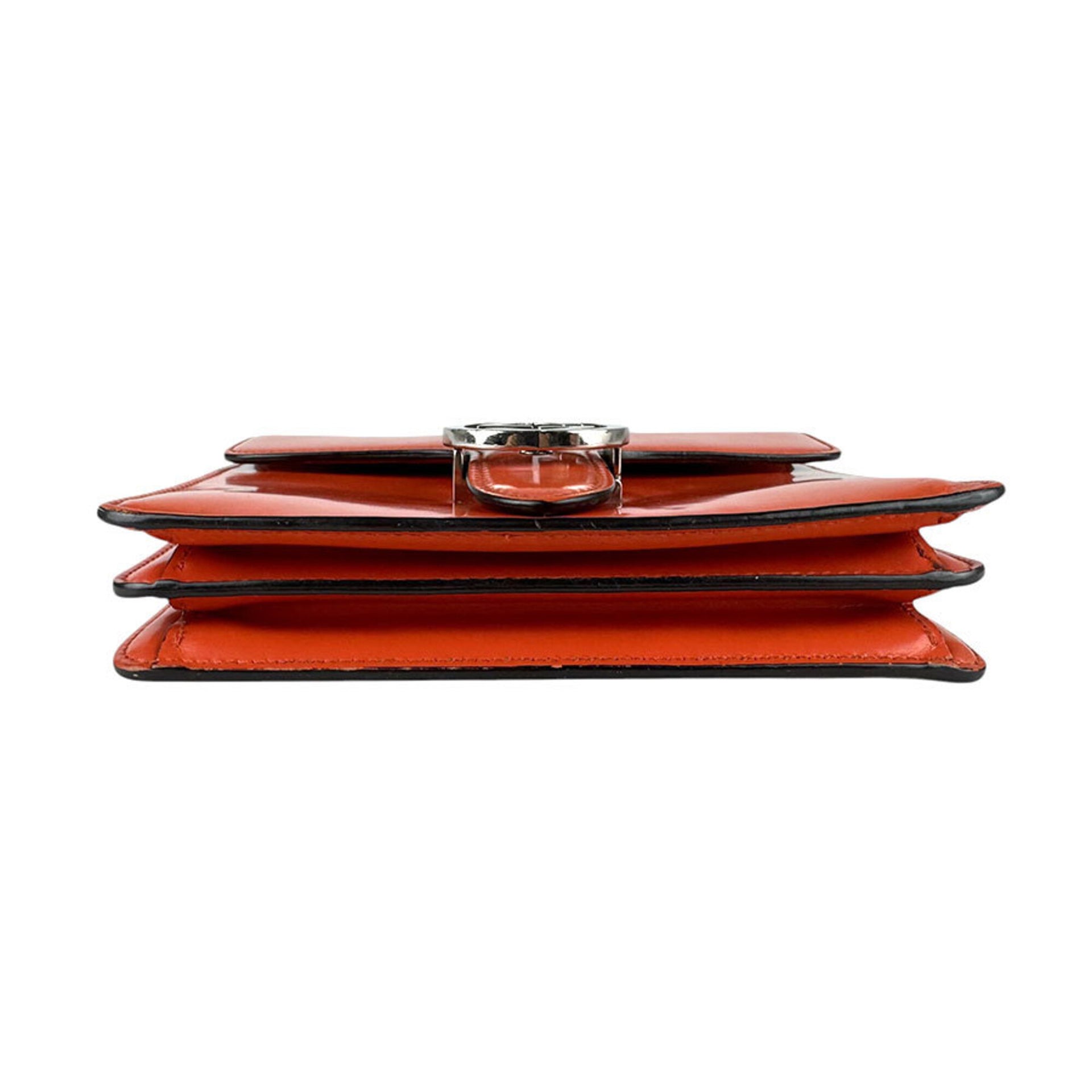 Gucci Interlocking G Shoulder Bag, Leather, Metal, Orange, Silver, Women\'s, 387609, Free Shipping, z9197