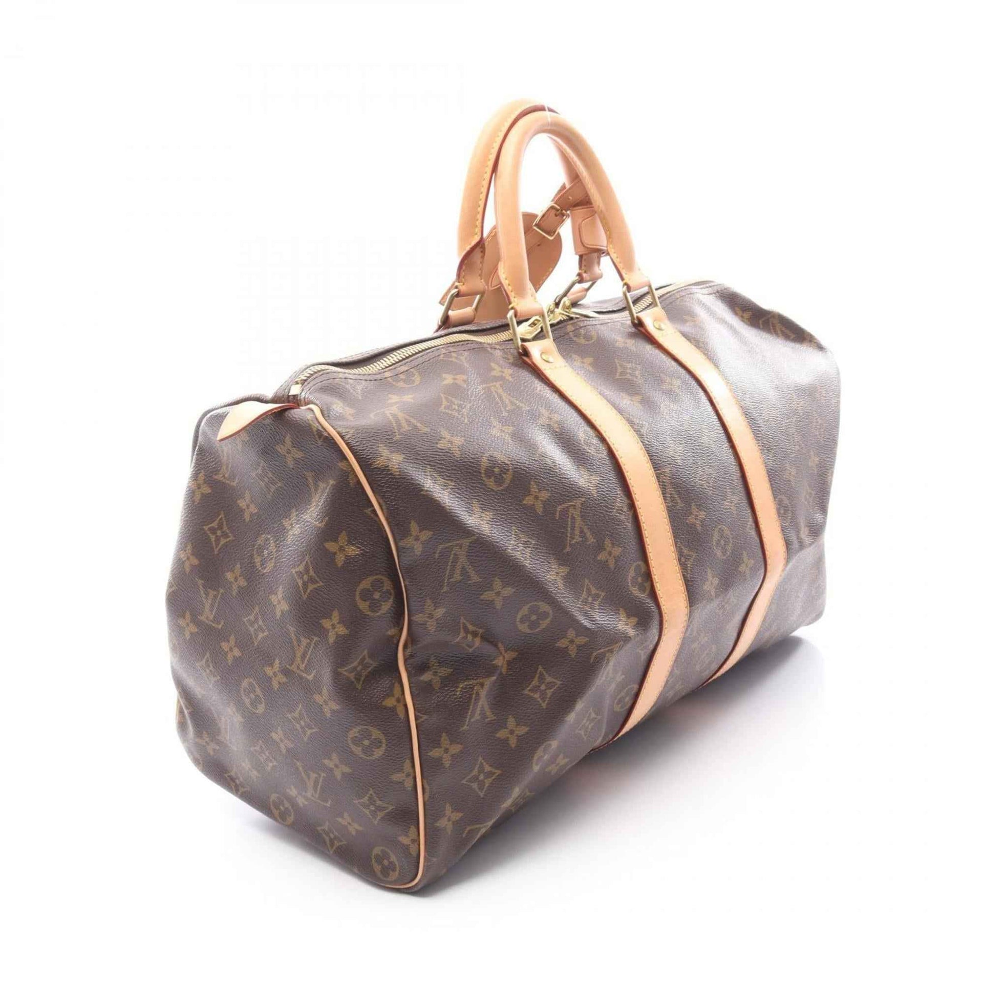 Louis Vuitton Keepall 45 reistas, gecoat canvas en leer, Monogram, bruin, voor dames en heren, M41428