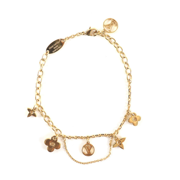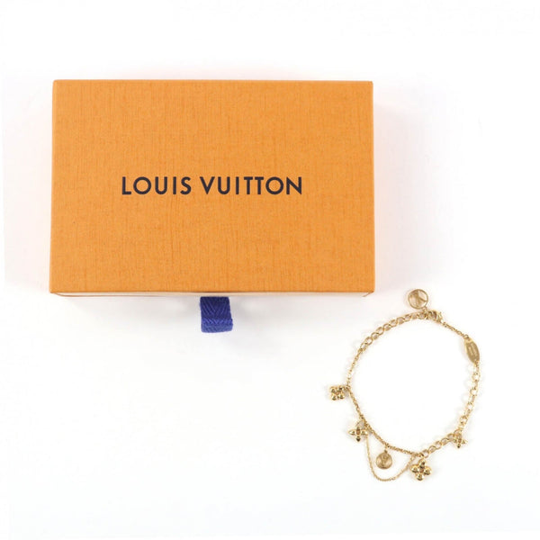 LOUIS VUITTON M1485A Blooming LV Circle Monogram Flower Bracelet, Gold, with Box, Made in Italy, Women\'s.