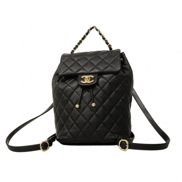Chanel Matelassé Backpack/Daypack, Caviar Leather, Black/Champagne, Women\'s
