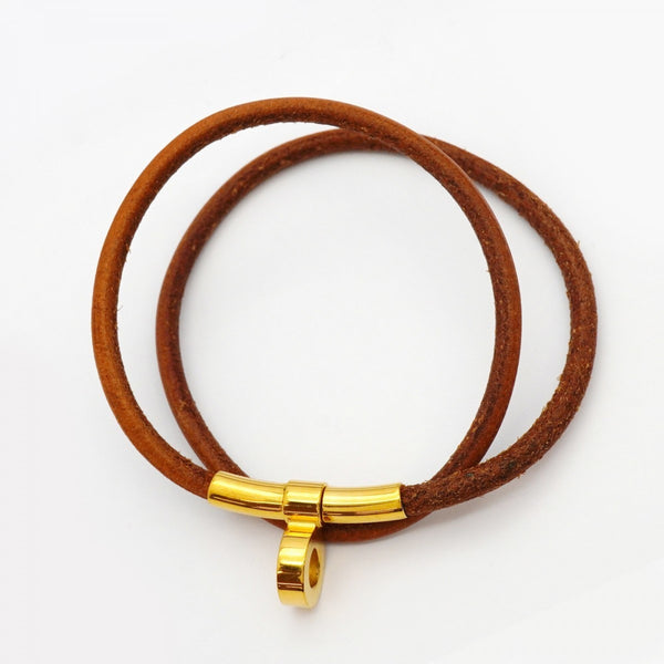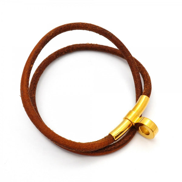 Hermes Double Kelly Bracelet, GP Plated Leather, Gold Brown, Women\'s