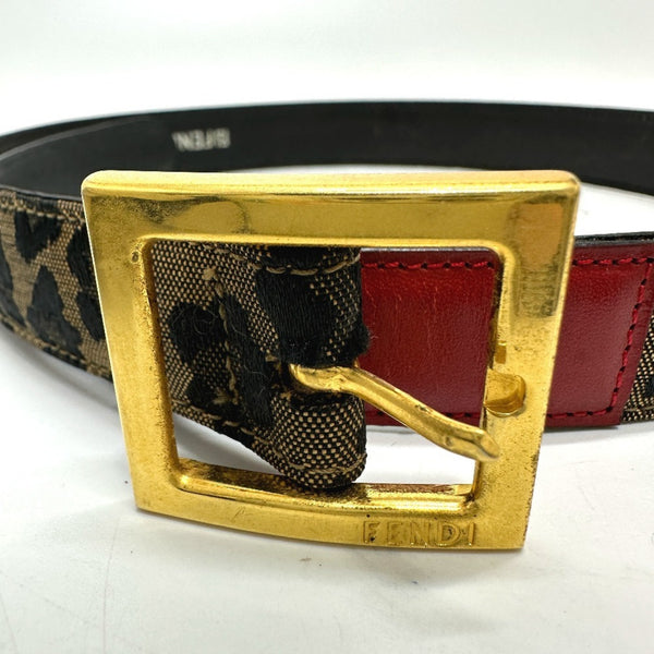 FENDI Luipaardprint Riem Canvas Leer Dames Bruin Rood