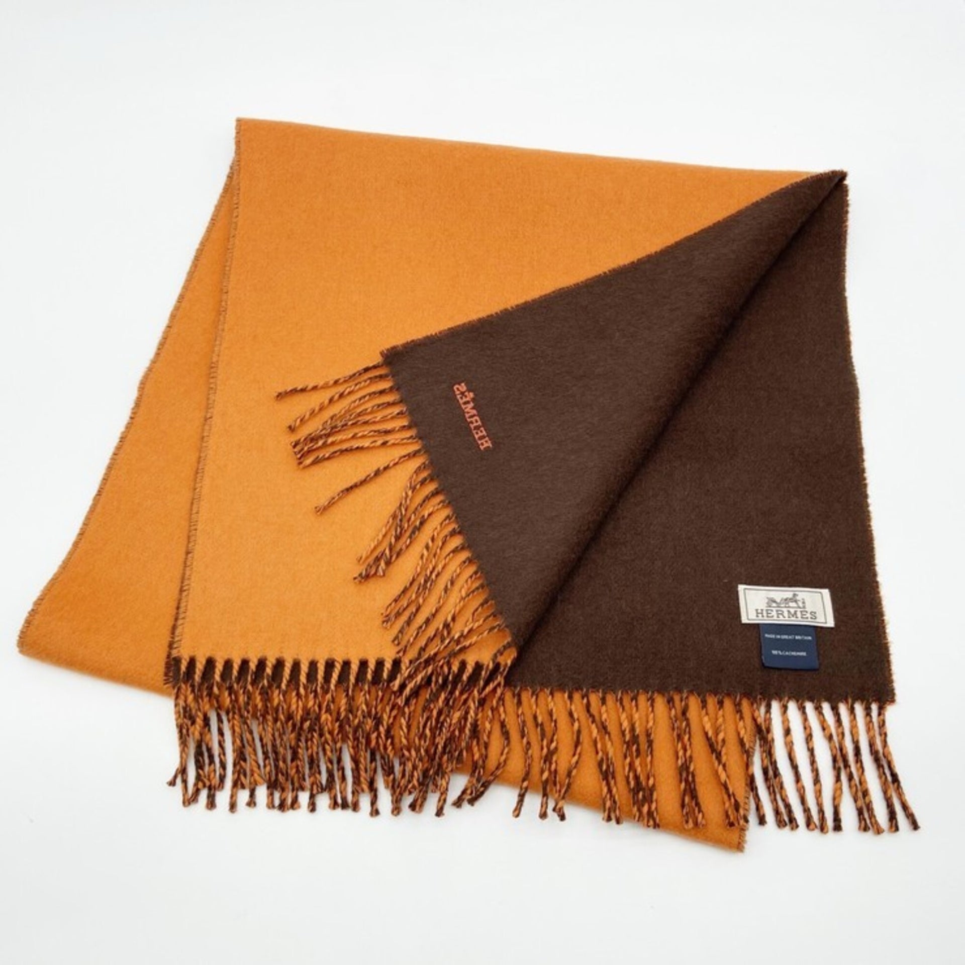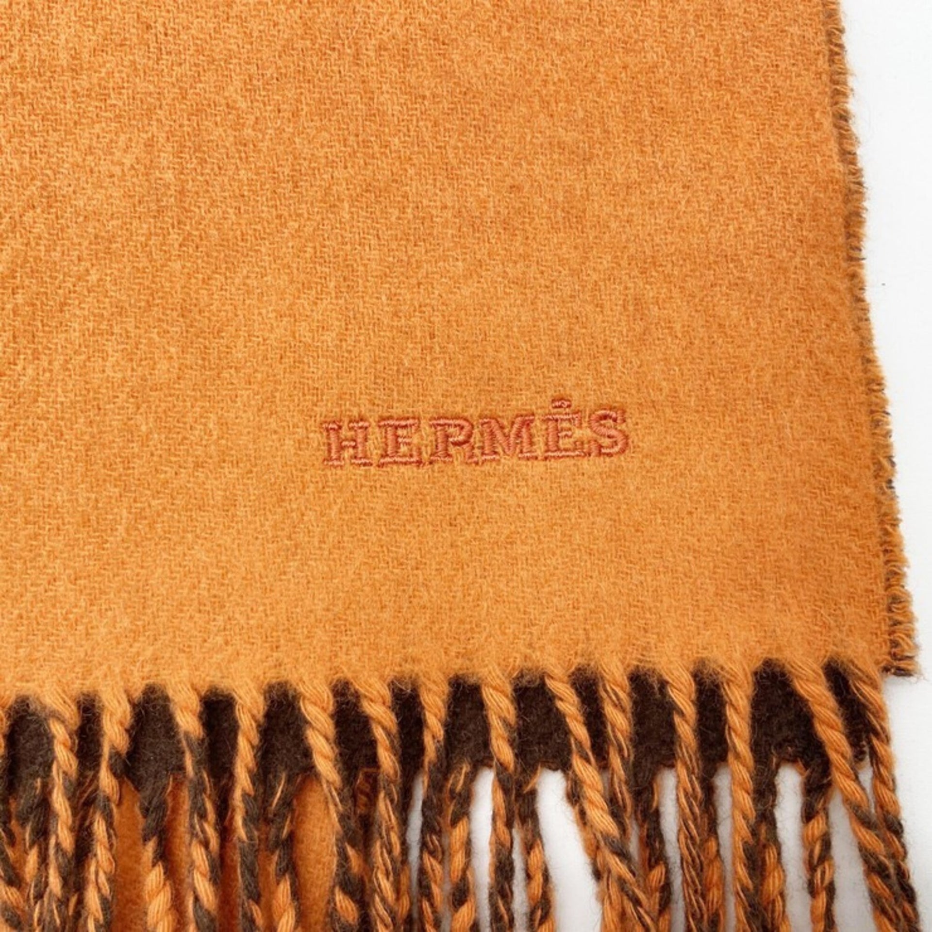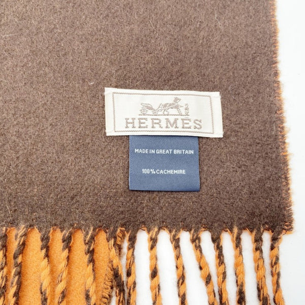 HERMES scarf/stole, orange and brown, 100% cashmere, men\'s women\'s, two-tone.