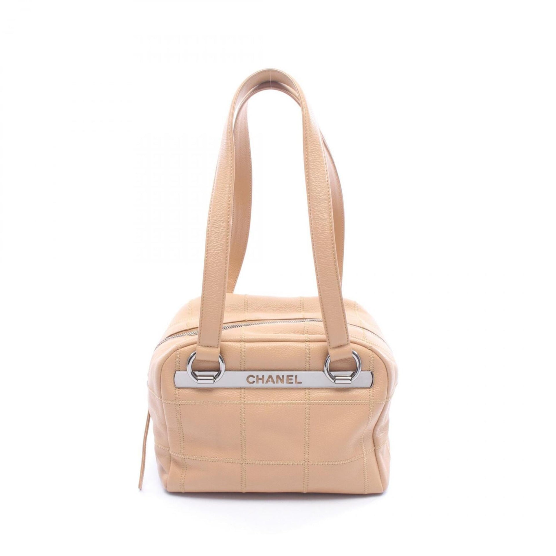 Chanel Chocolate Bar Handbag, Calfskin Leather, Women\'s, Beige