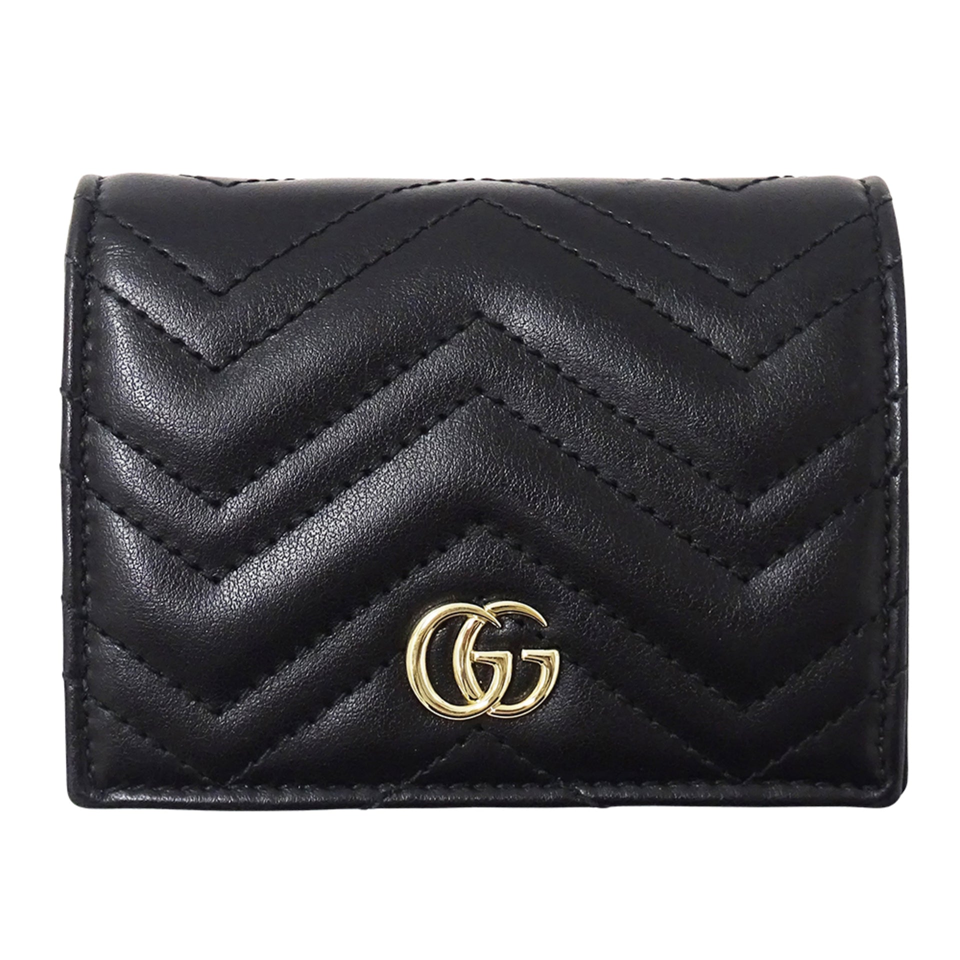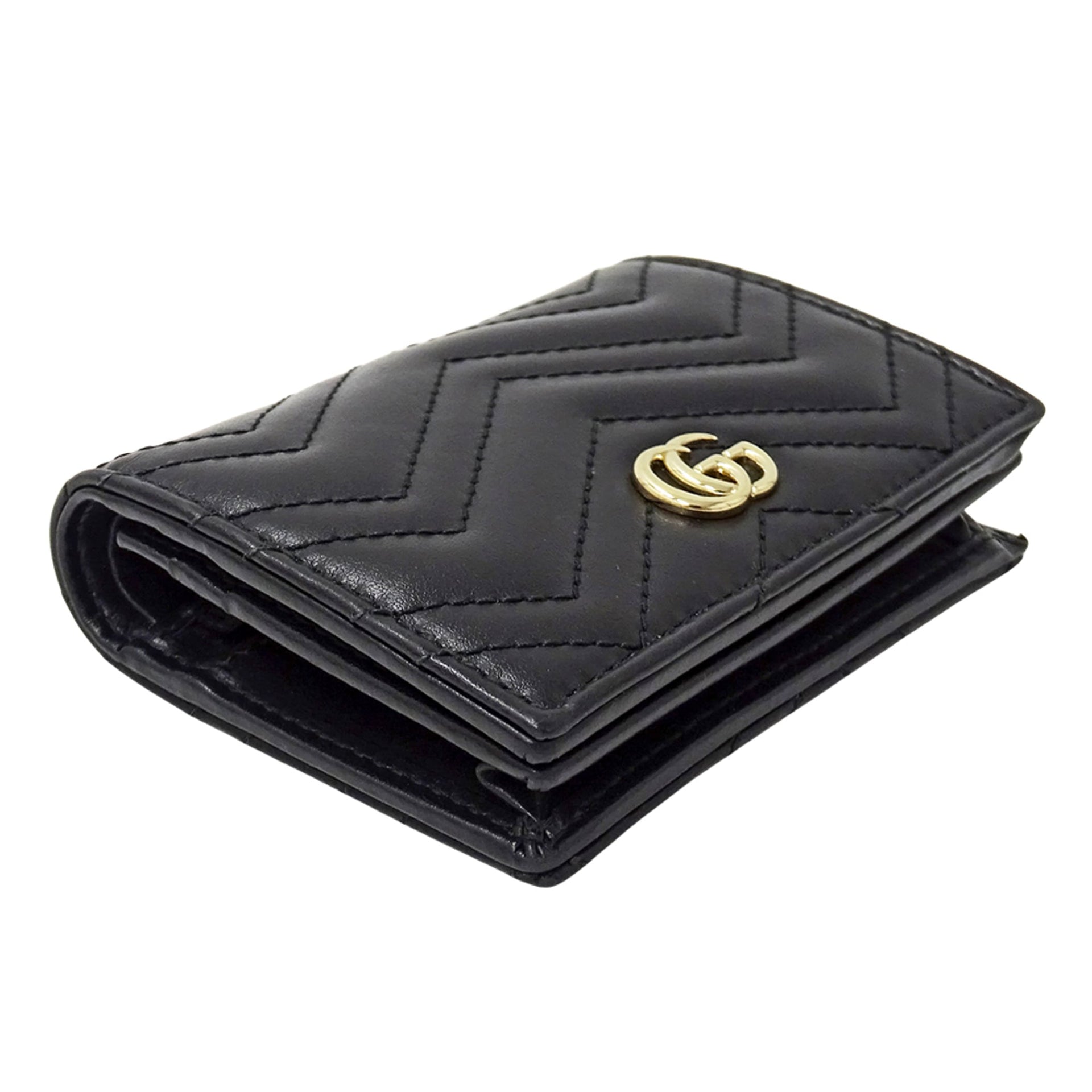 Gucci GUCCI Wallet for Women and Men, Brand Name, Bi-fold Wallet, GG Marmont Leather, Black, 466492, Quilted, Mini