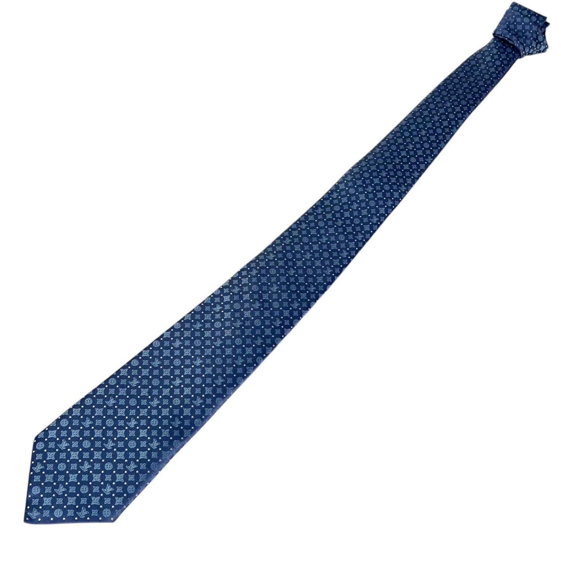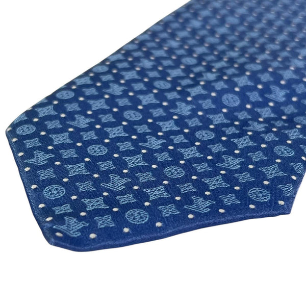LOUIS VUITTON M90831 Monogram Shadow Dot 8cm Tie, Blue, with Box, Men\'s
