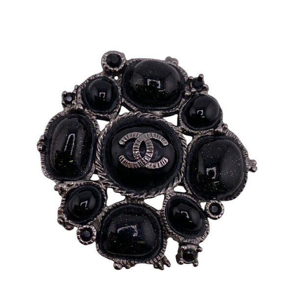 CHANEL C00V Coco Mark Rhinestone Brooch Black Women\'s