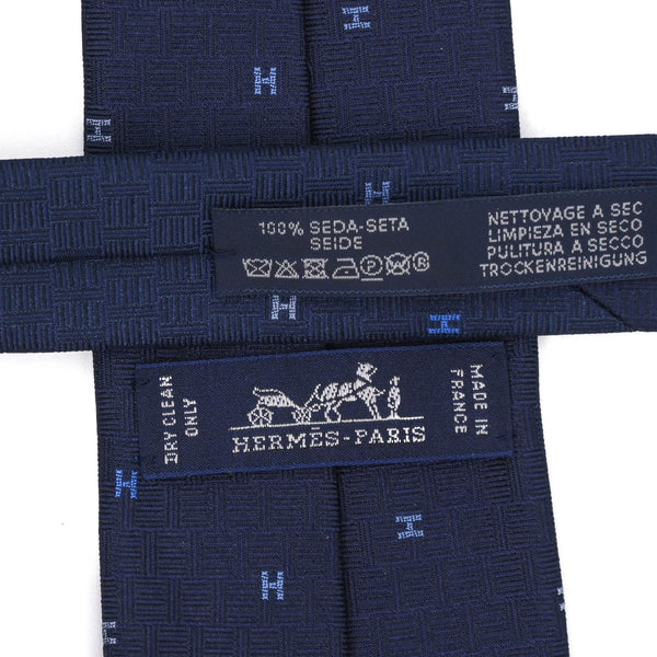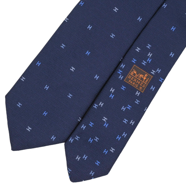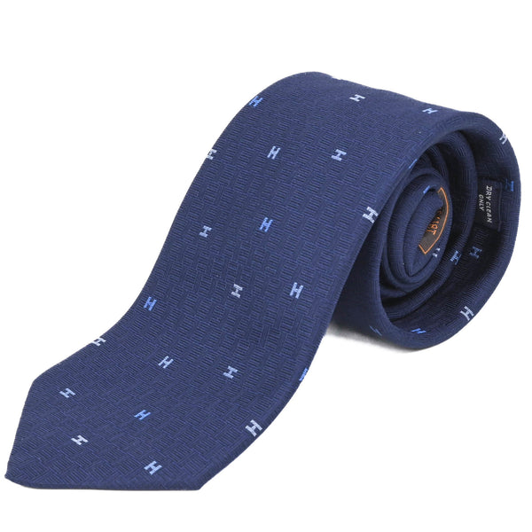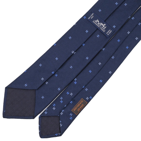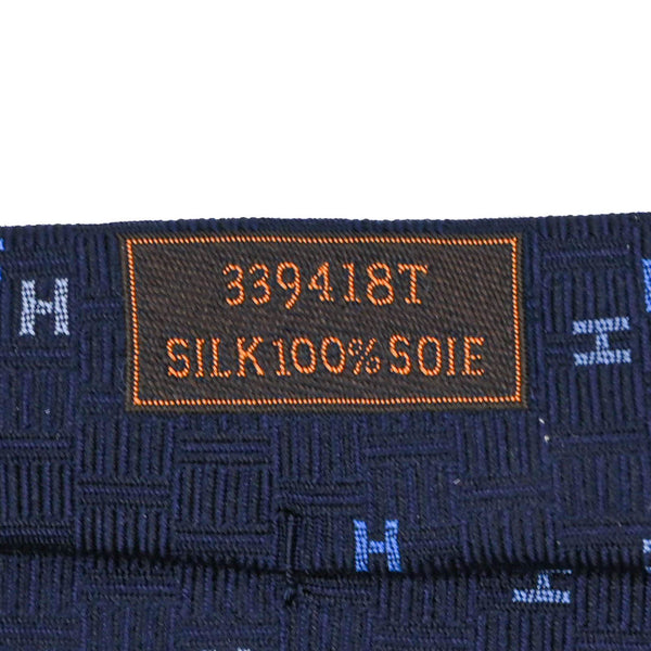 HERMES H Tie, Navy Blue, 100% Silk, Men\'s