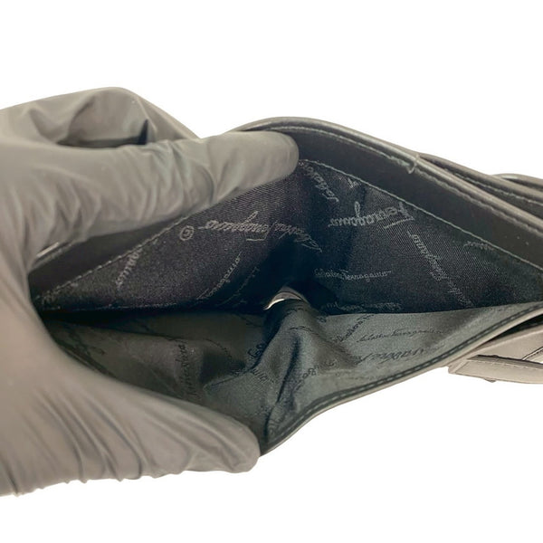 Salvatore Ferragamo Gancini logo hardware leather bi-fold wallet mini black 28141
