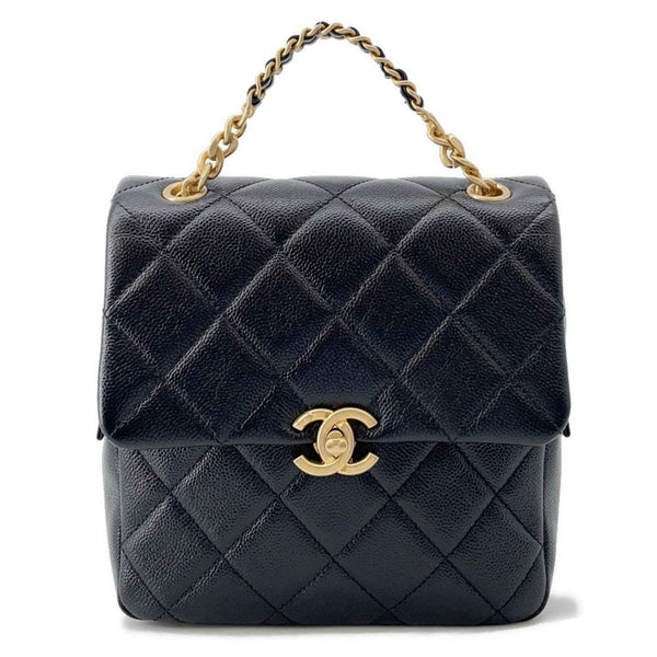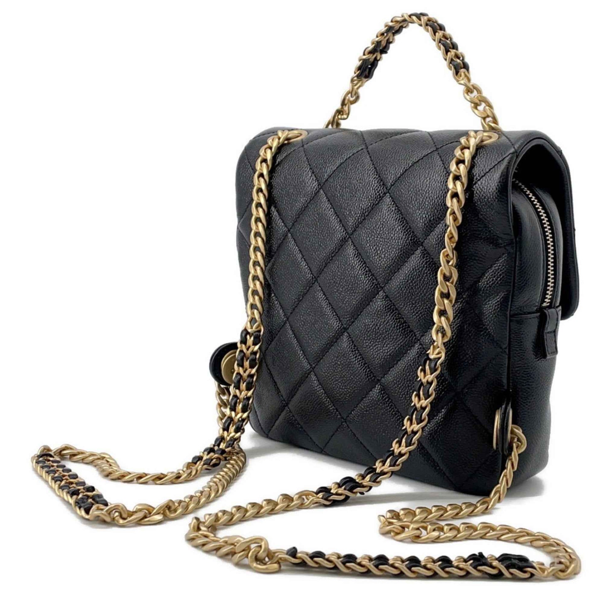 CHANEL Matelasse Coco Mark Caviar Leather Backpack AS3108 Bag Black