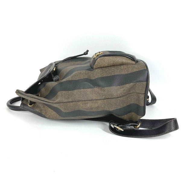 FENDI Pecan Backpack, PVC/Leather, Unisex, Khaki