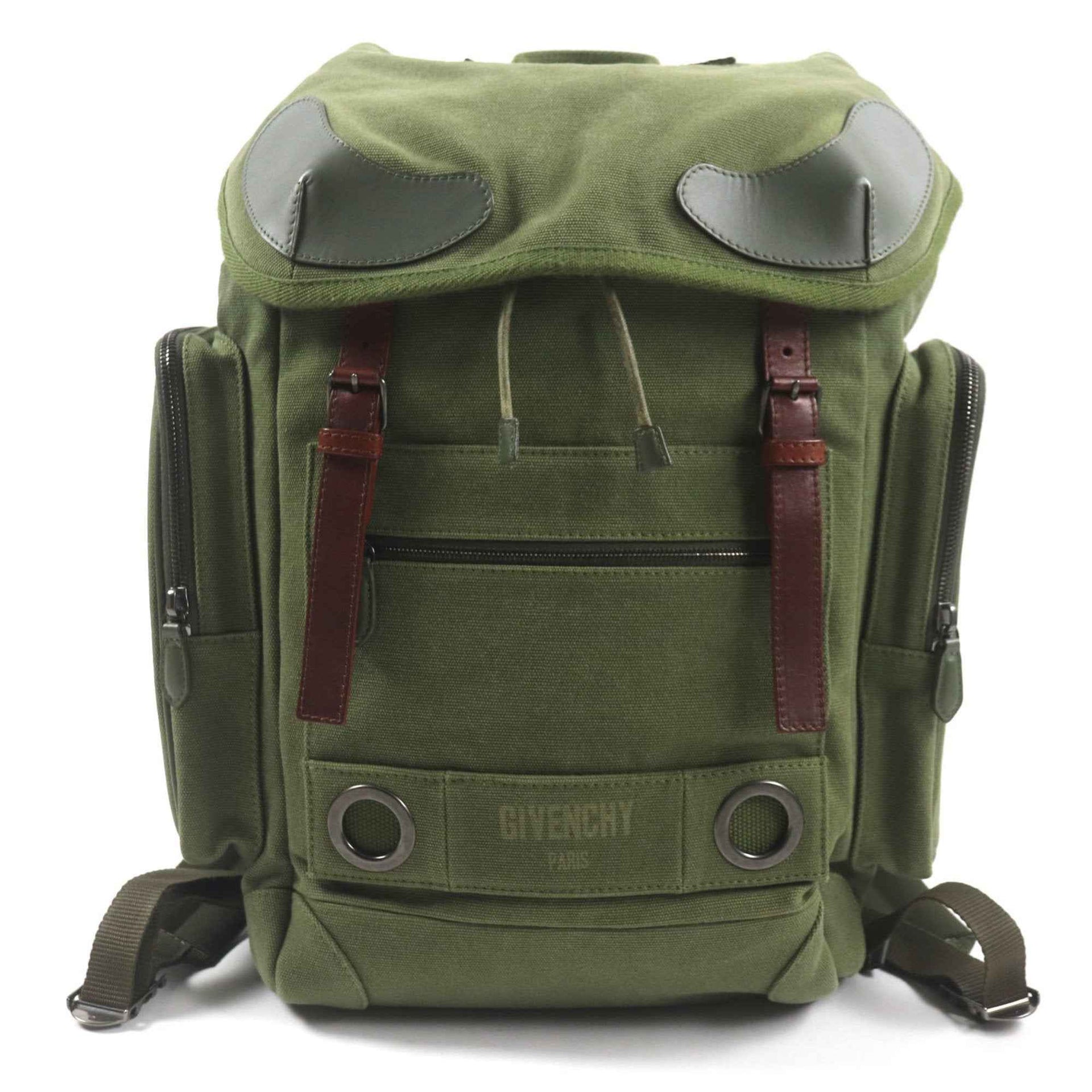 GIVENCHY Men\'s Khaki Military Drawstring Backpack with Logo Print, Canvas and Leather.