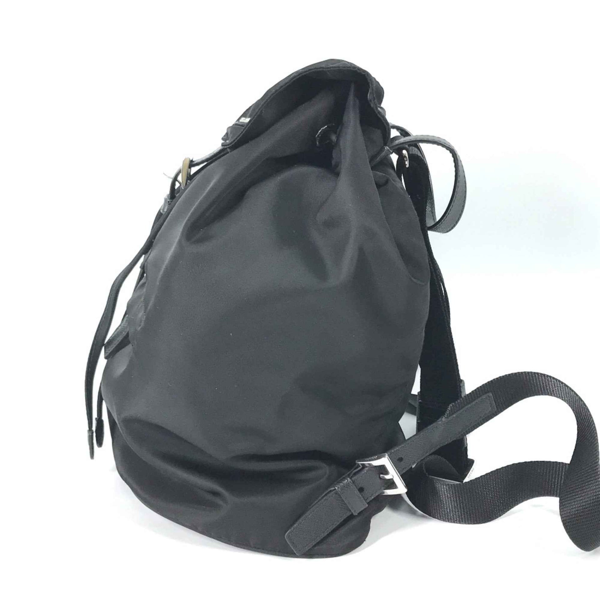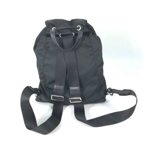 PRADA 1BZ032 Logo Plate Triangle Backpack in Nylon/Leather, Black, Women\'s