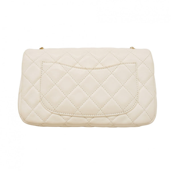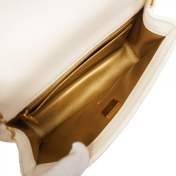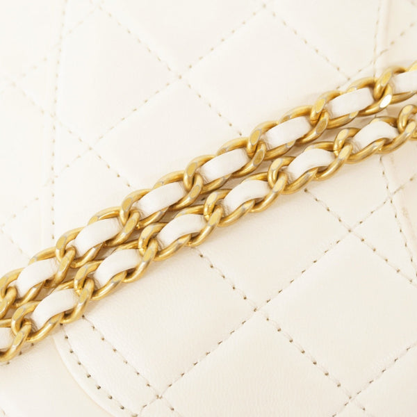 Chanel Matelasse Shoulder Bag with Chain Bag, Lambskin, White, Women\'s