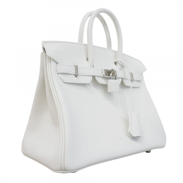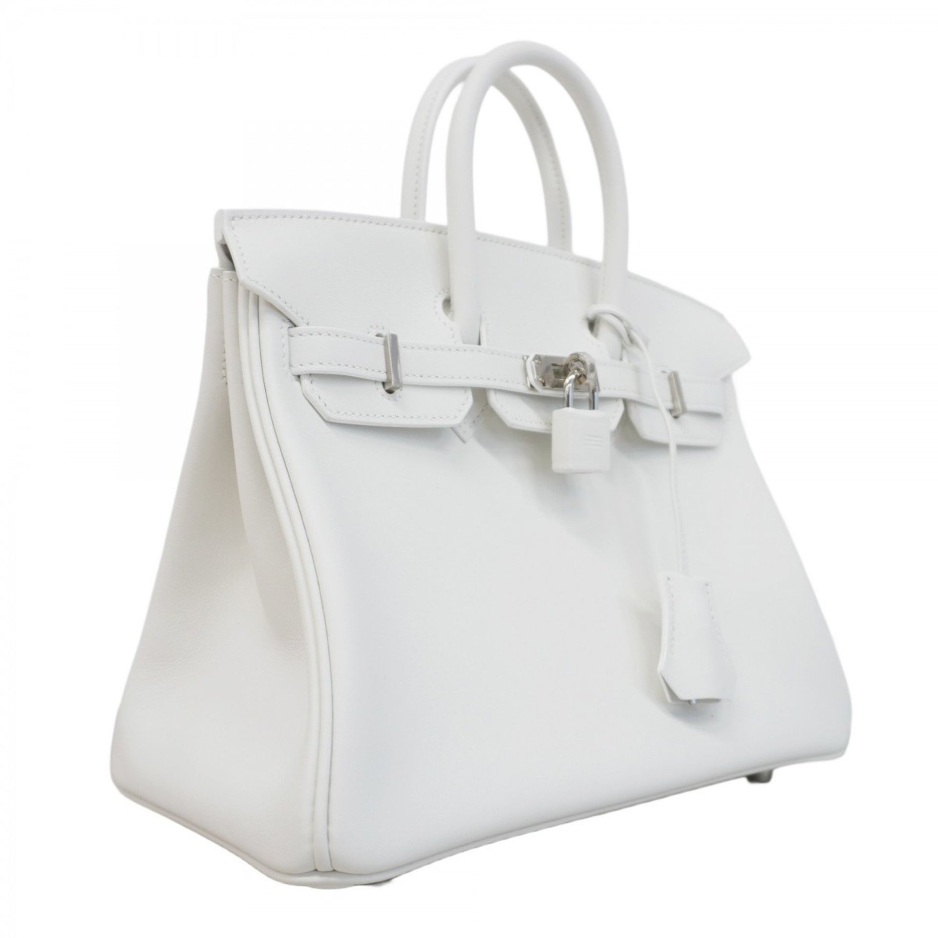 Hermes Birkin 25 Swift New White Handbag with Double Stamp for Women