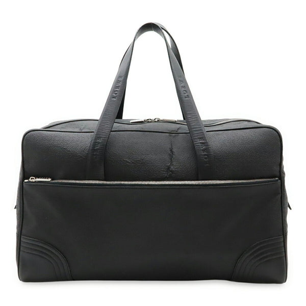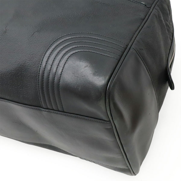 LOEWE Repeat Anagram Boston Bag/Travel Bag in Embossed PVC and Black Leather