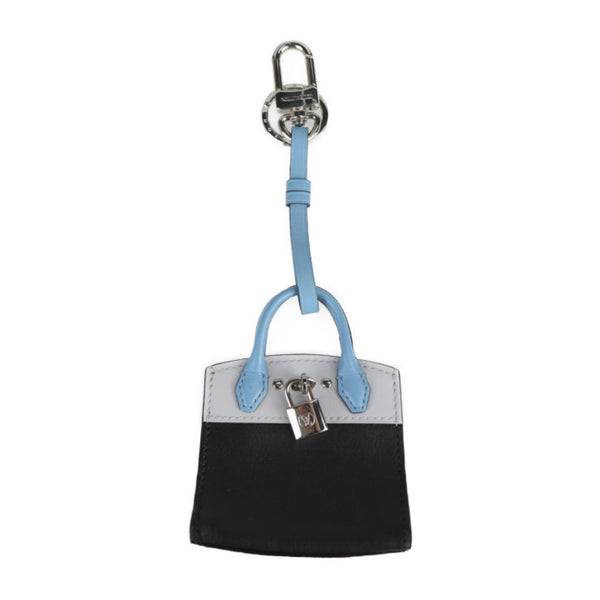 LOUIS VUITTON Louis Vuitton City Steamer Keychain MP1786 Leather Black Light Blue Bag Charm Key Ring