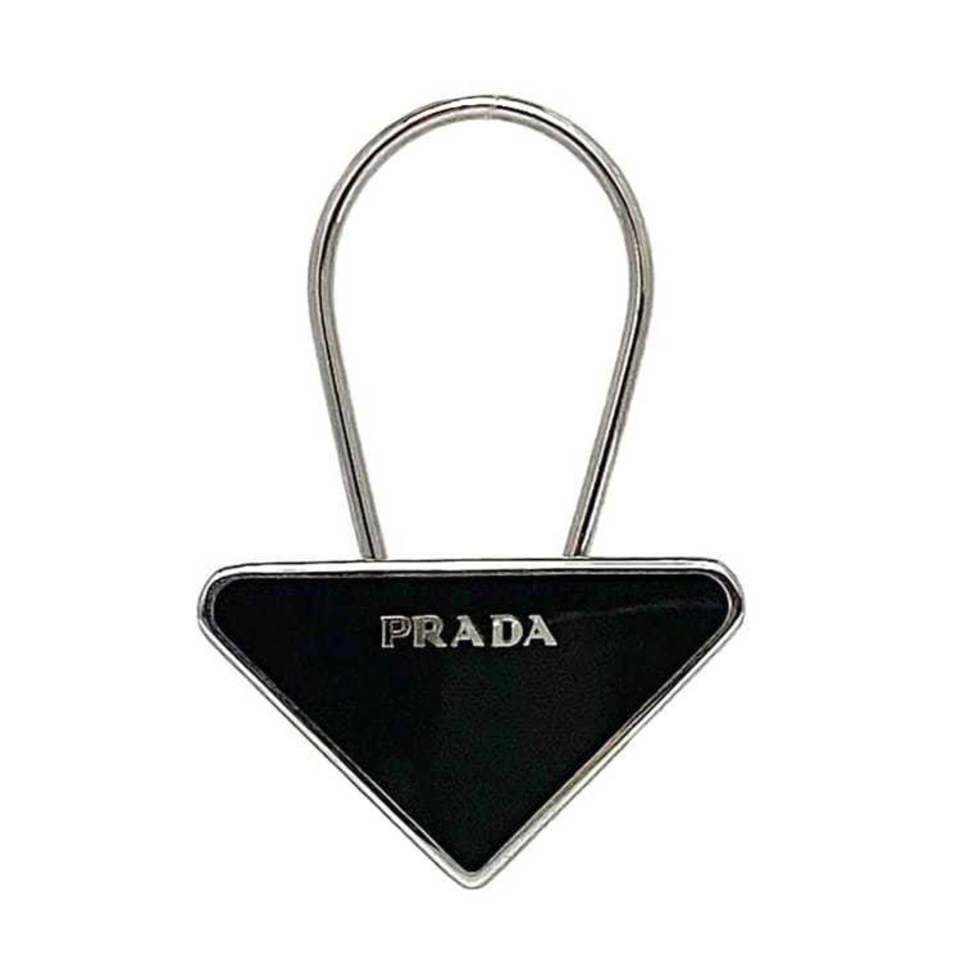 Prada Key Ring ec-23668 Black and Silver Metal M715 PRADA Holder Plate Box Women\'s Men\'s Bag Charm