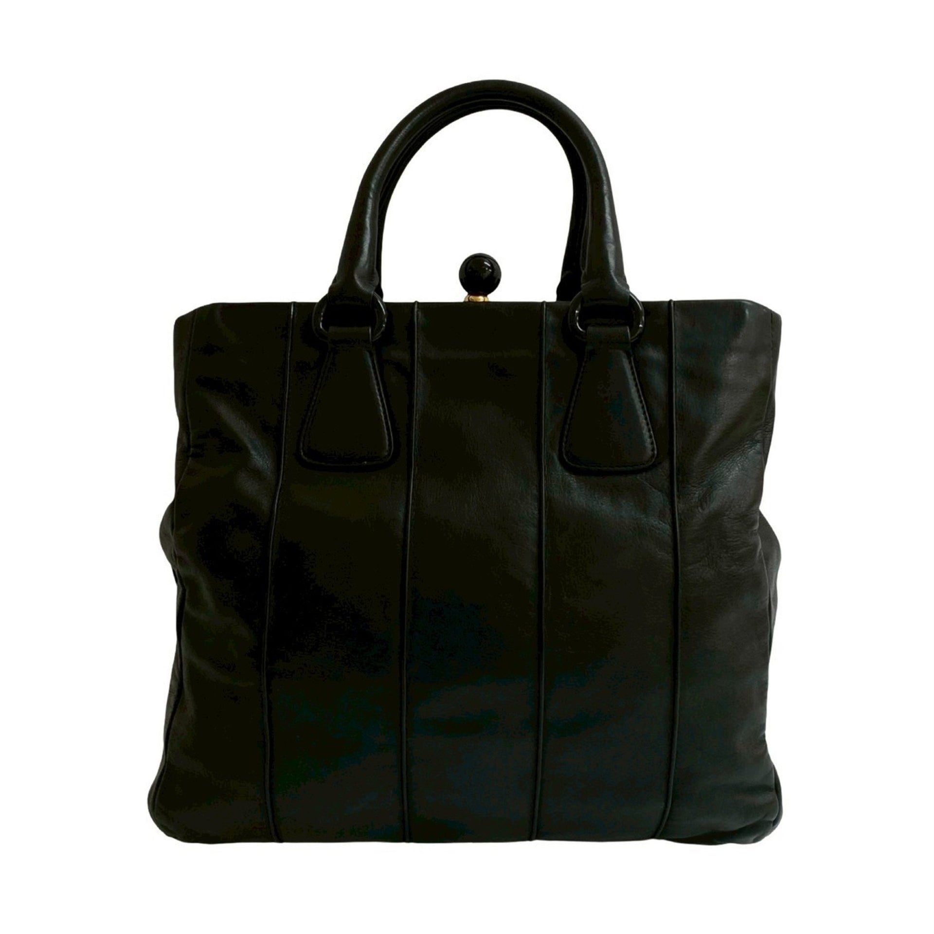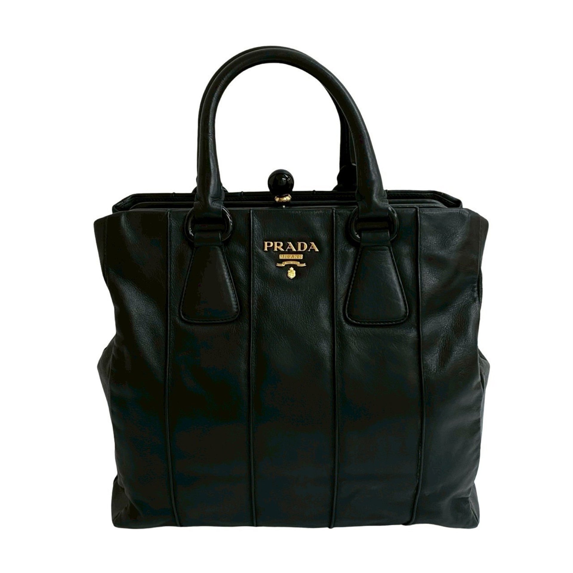 PRADA Prada Logo Gold Hardware Leather Genuine Clasp Handbag Tote Bag Boston Black 006-3