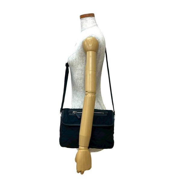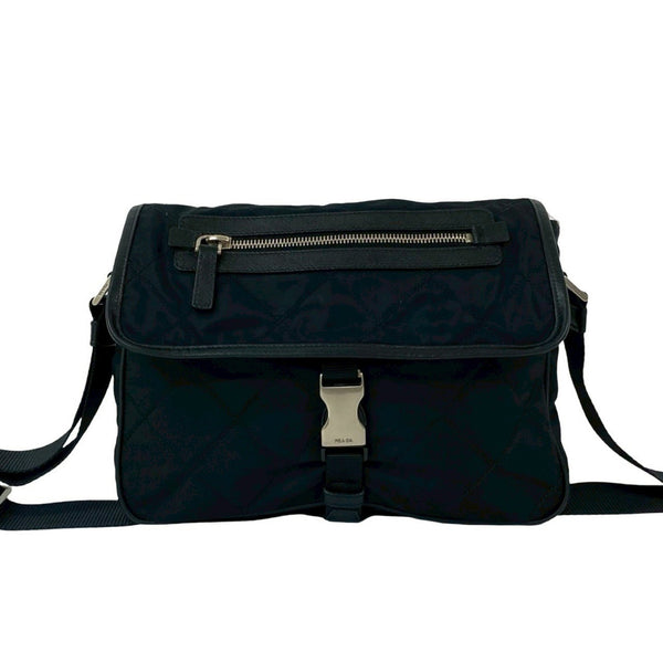 PRADA Prada Triangle Logo Plate with Metal Fittings, Quilted Tessuto Nylon Shoulder Bag/Pochette/Sacoche, Black 033-3