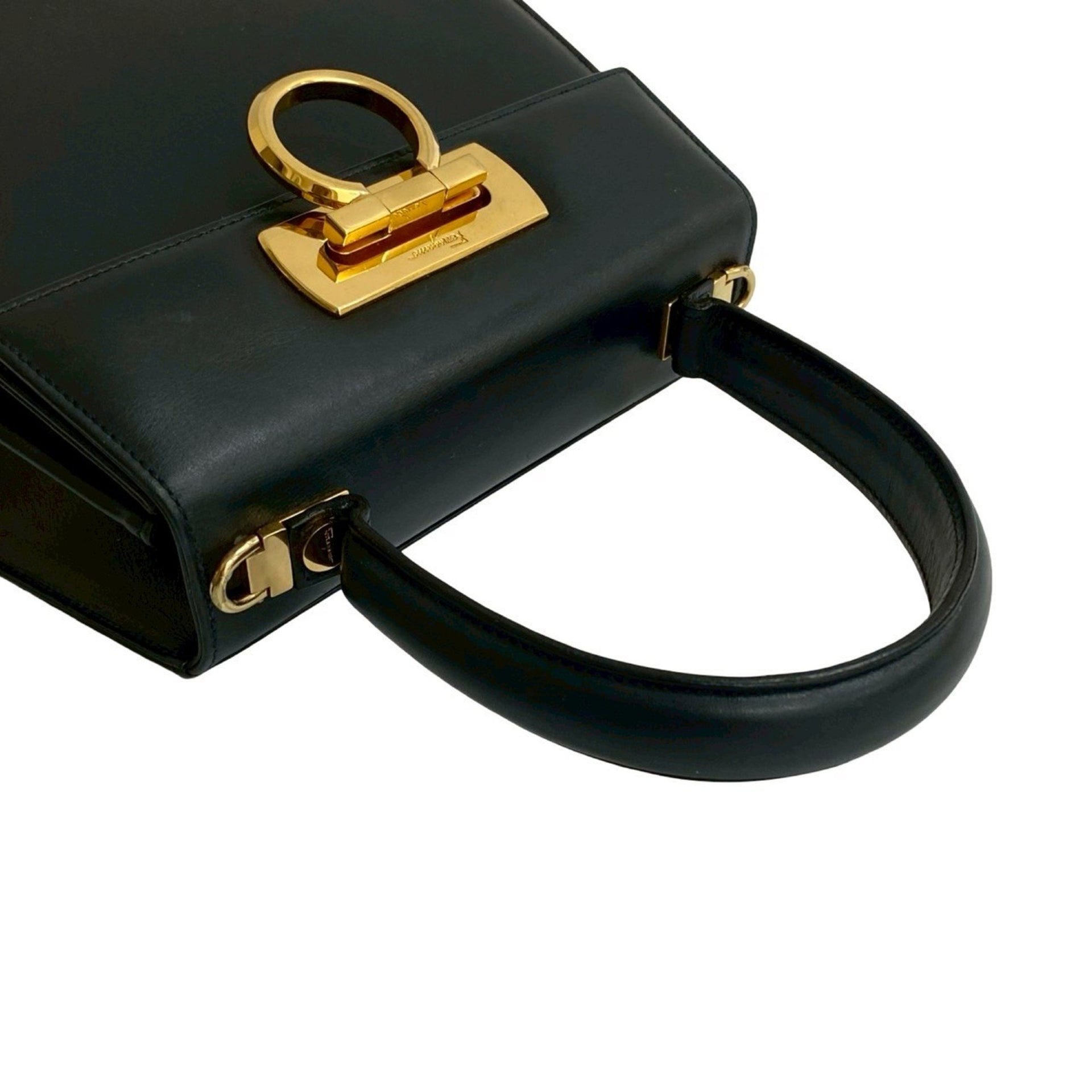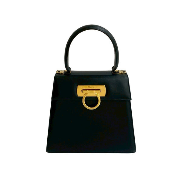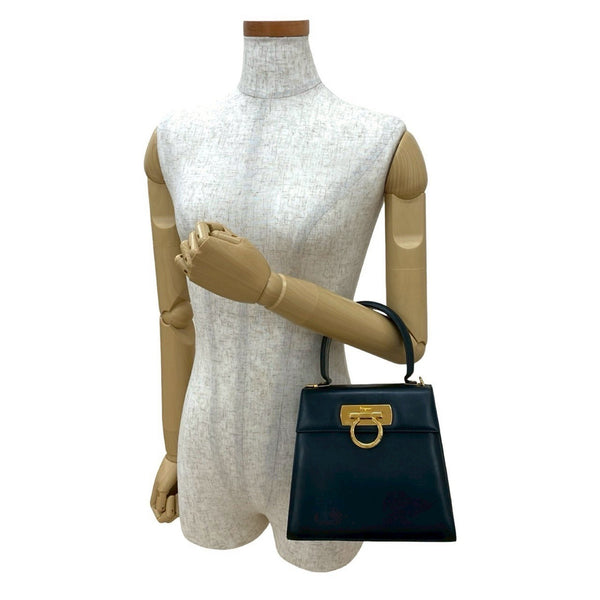 Salvatore Ferragamo Gancini hardware leather handbag tote bag in dark navy, 30715