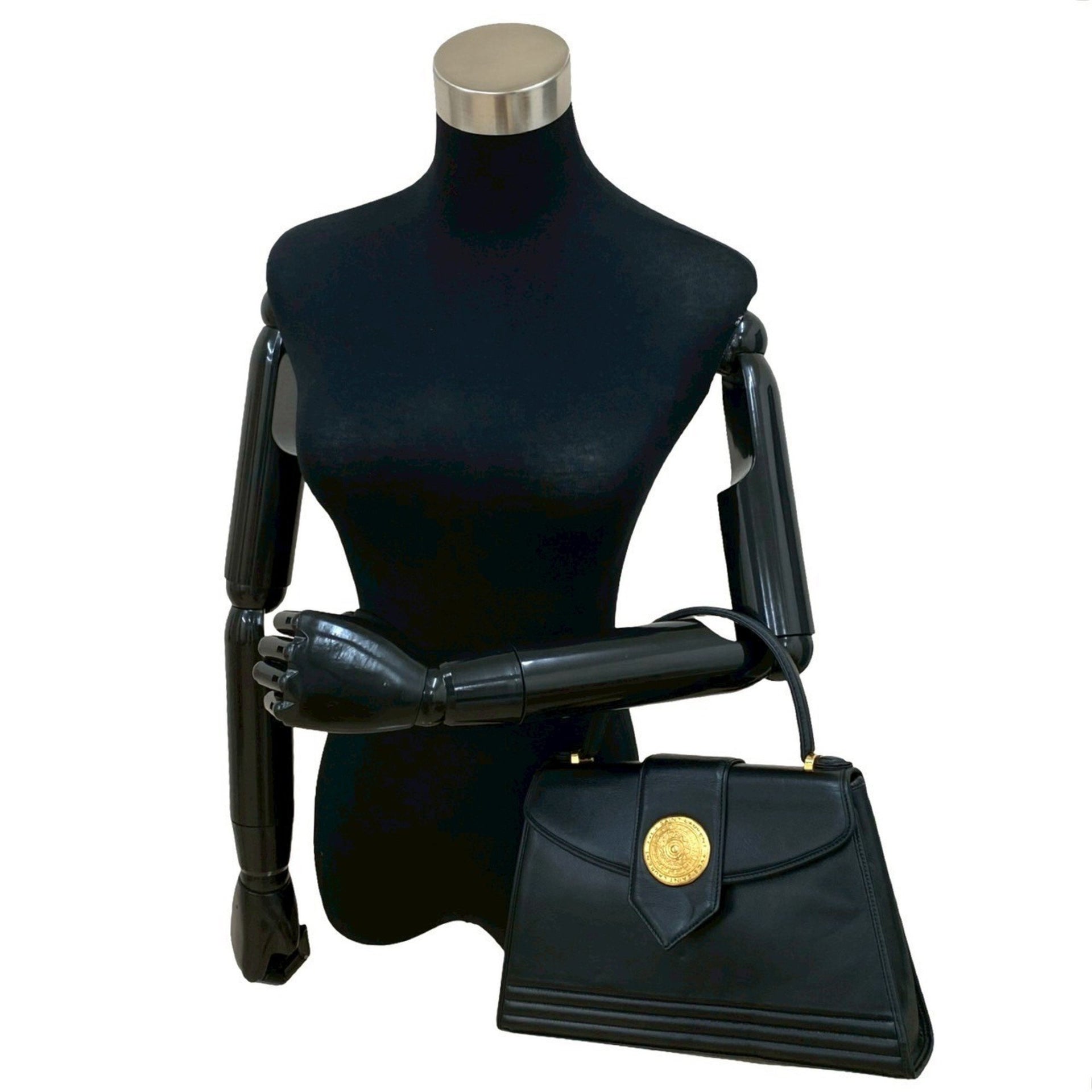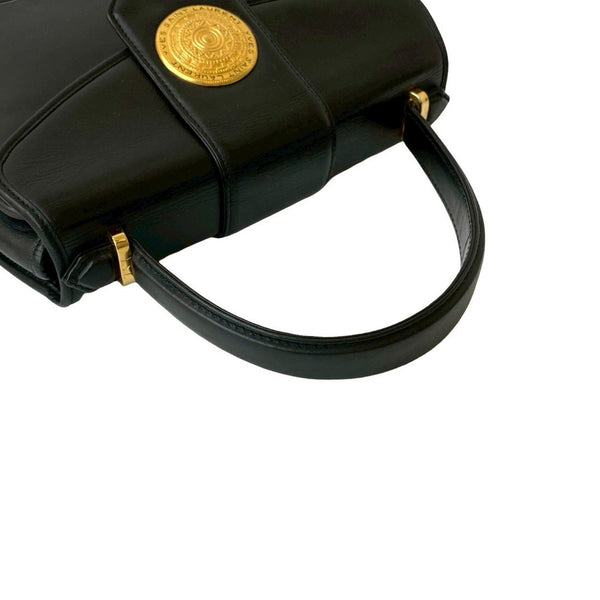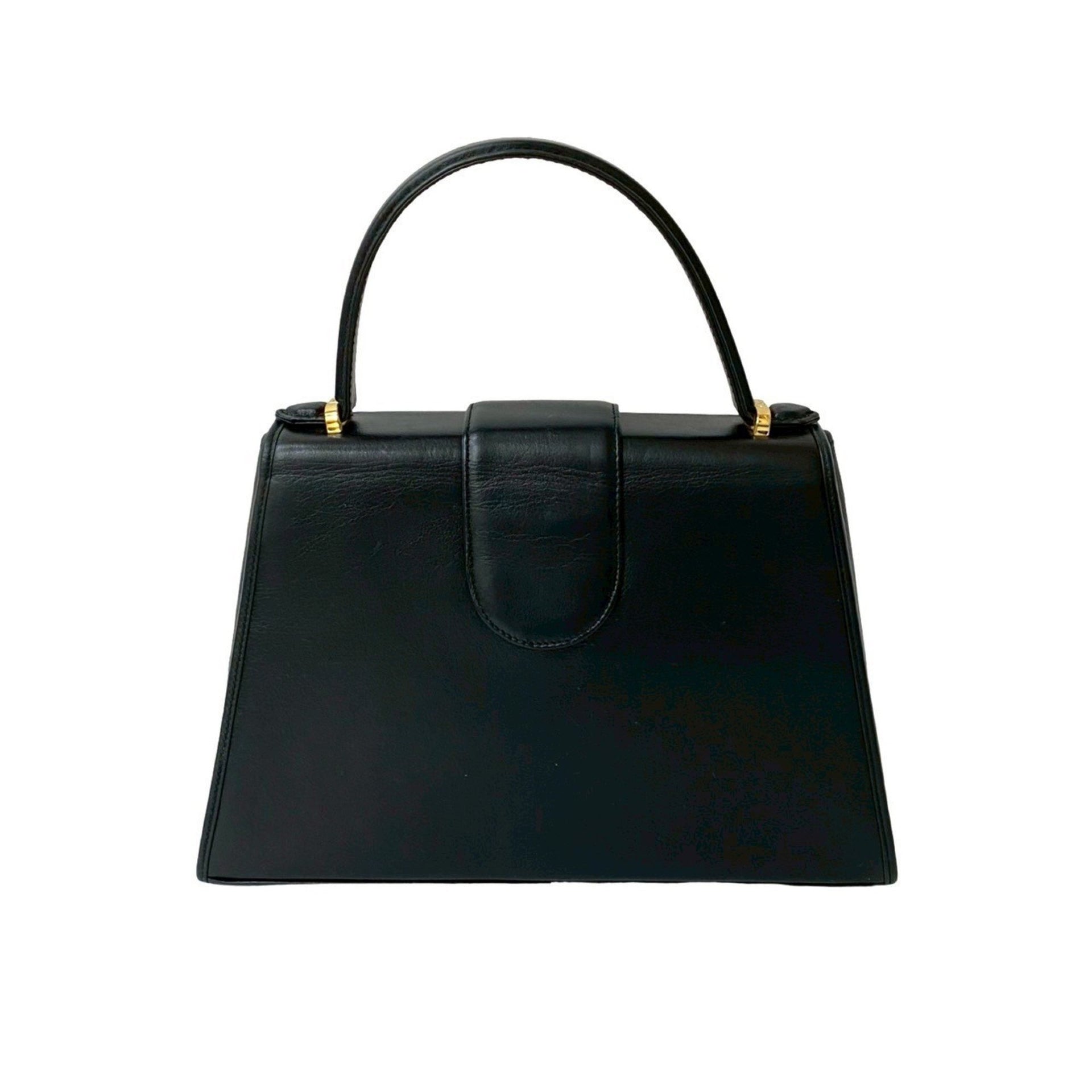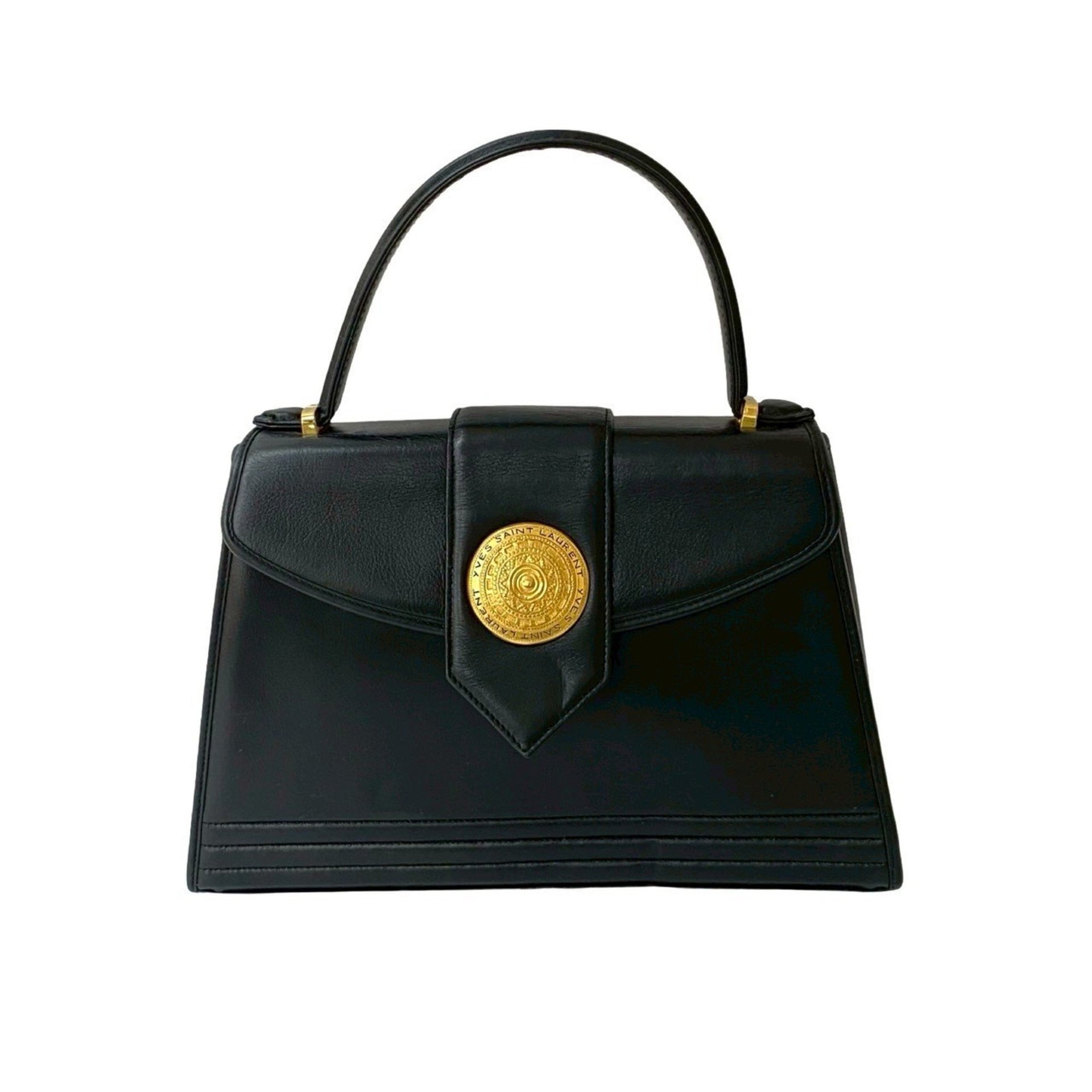YVES SAINT LAURENT Logo Hardware Leather Handbag Tote Bag Black 30270