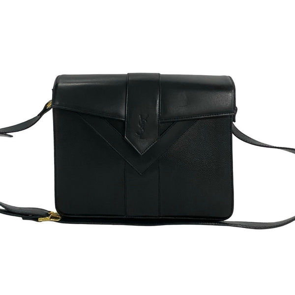 YVES SAINT LAURENT Yves Saint Laurent Logo Leather Shoulder Bag Pochette Black 33427