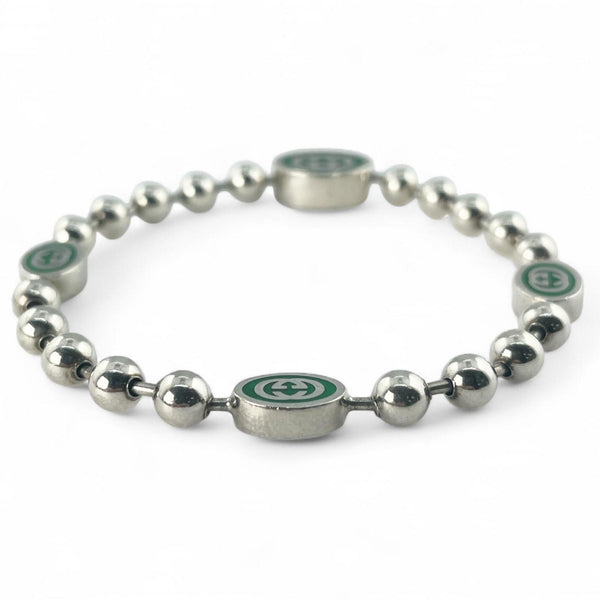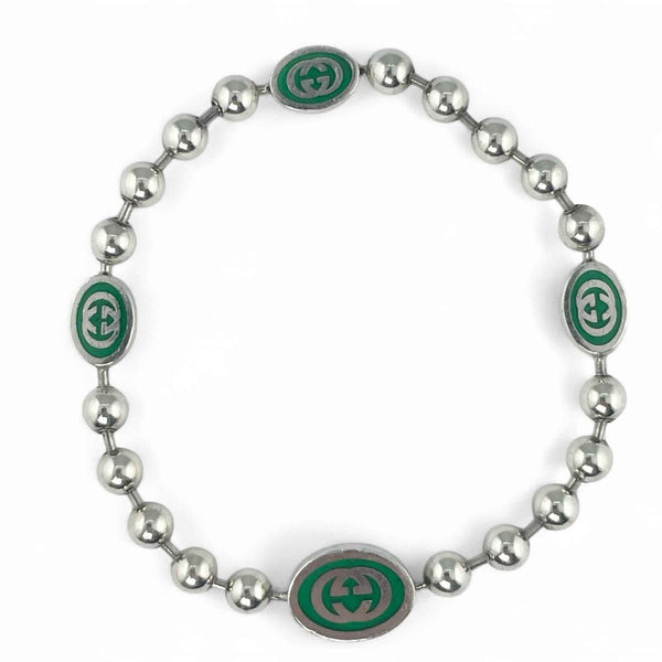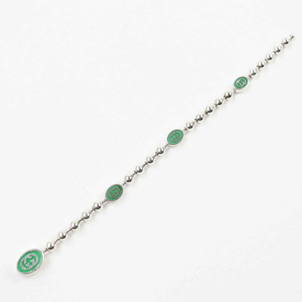 GUCCI Interlocking G Ball Chain Bracelet, AG925 Silver, Size 17, Made in Italy, Women\'s
