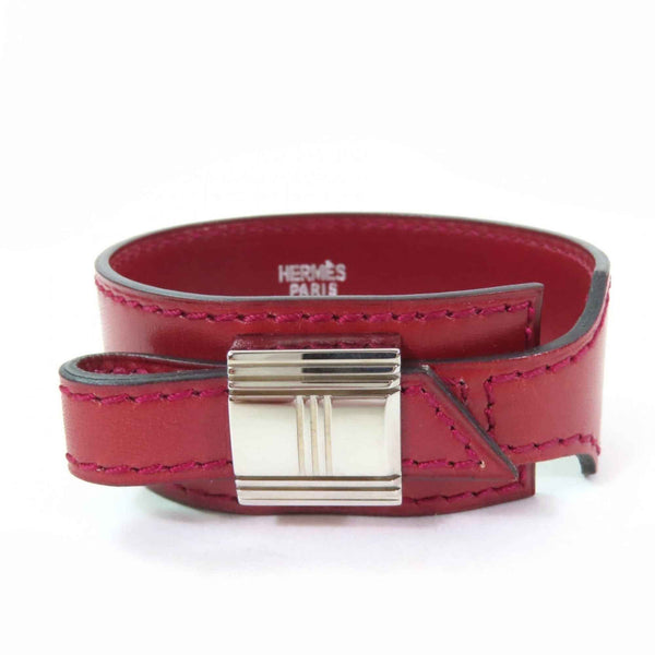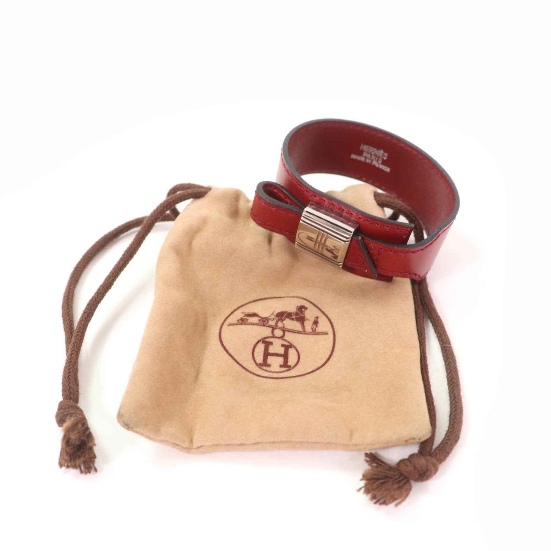 HERMES Artemis Bracelet, Leather, Silver Hardware, Bordeaux, Size M, D Stamp, Dust Bag Included, Made in France, Women\'s