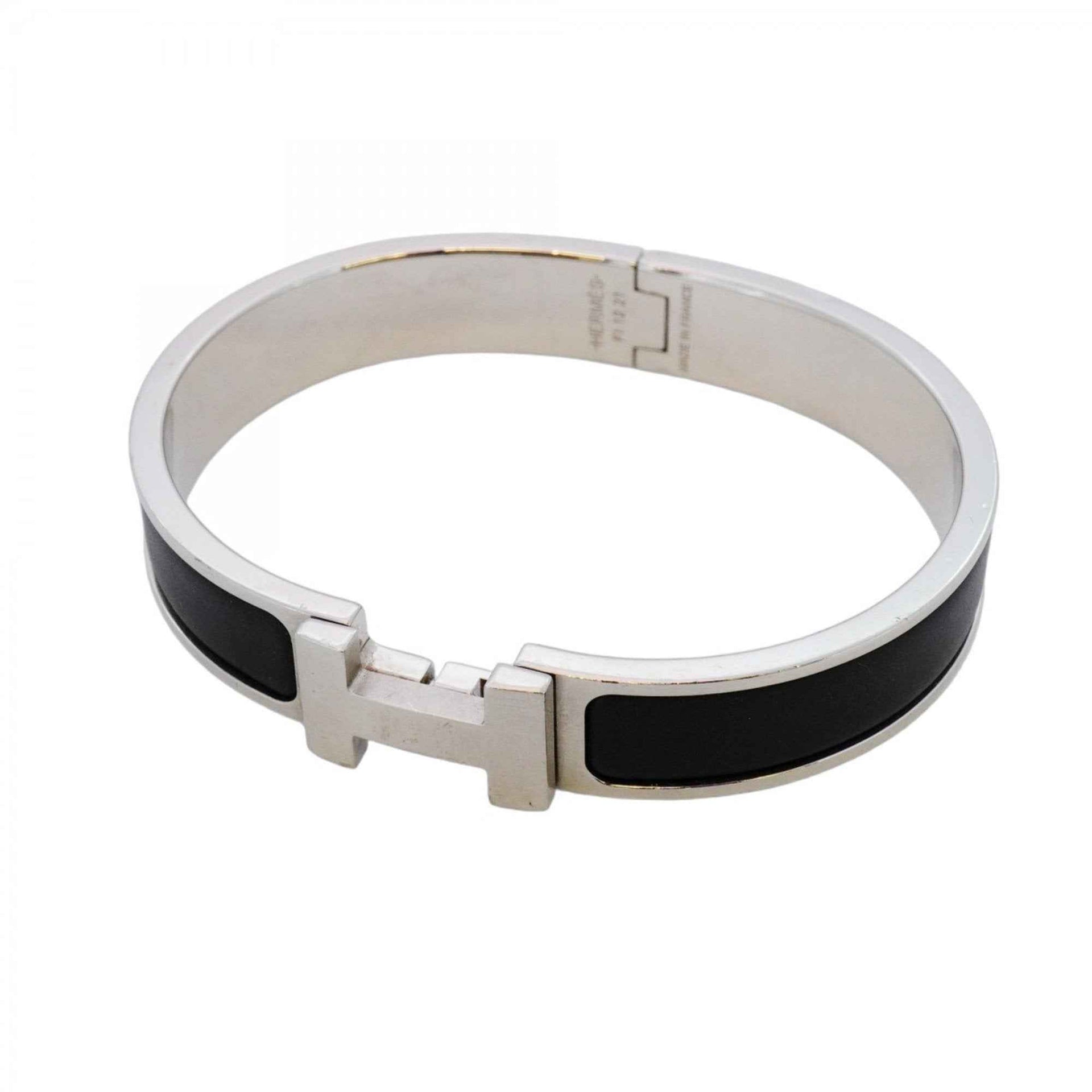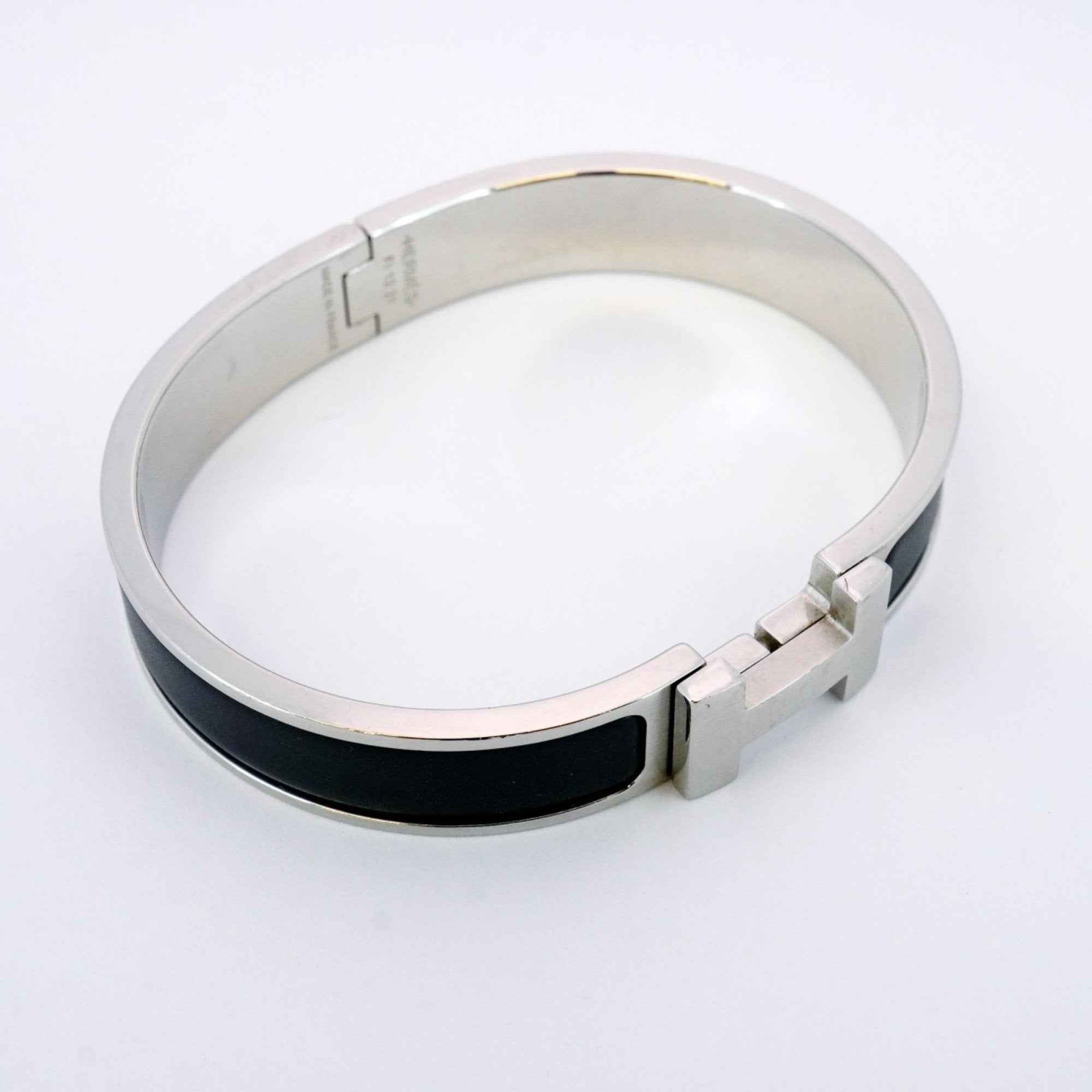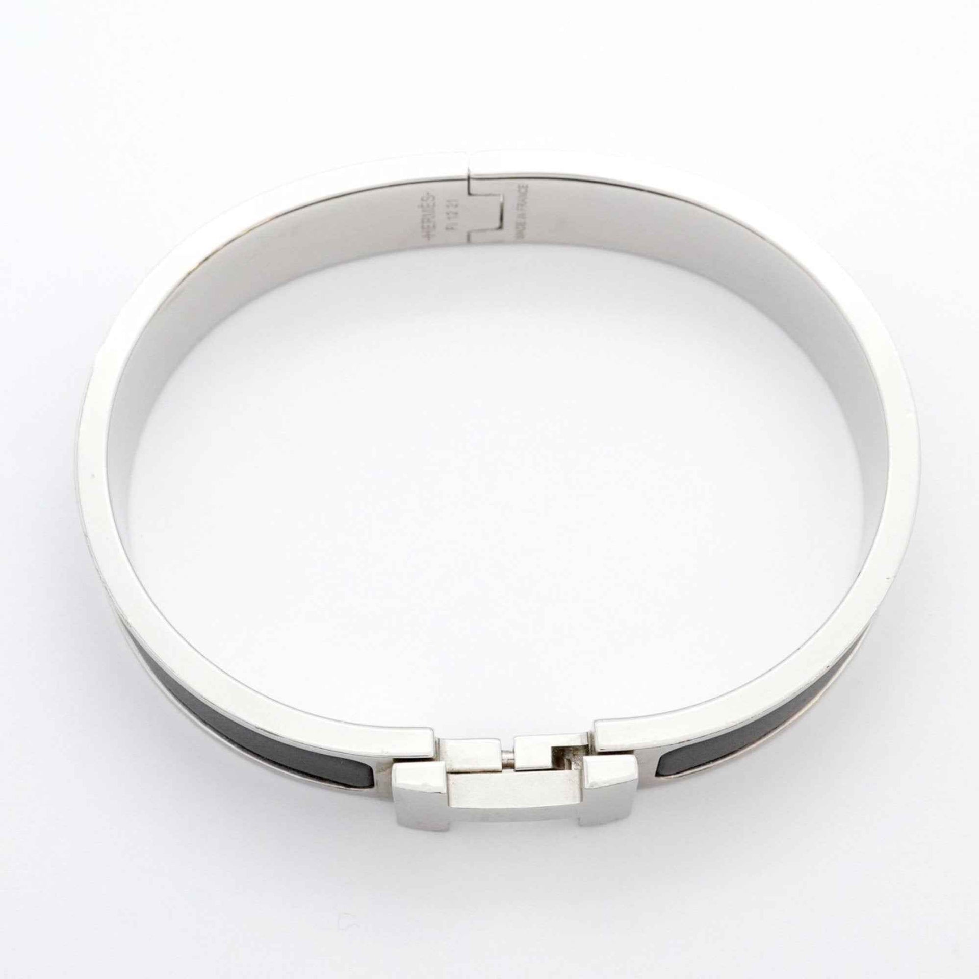 Hermes Hermès Click-Clack PM Bangle in Metal, Silver and Black for Men