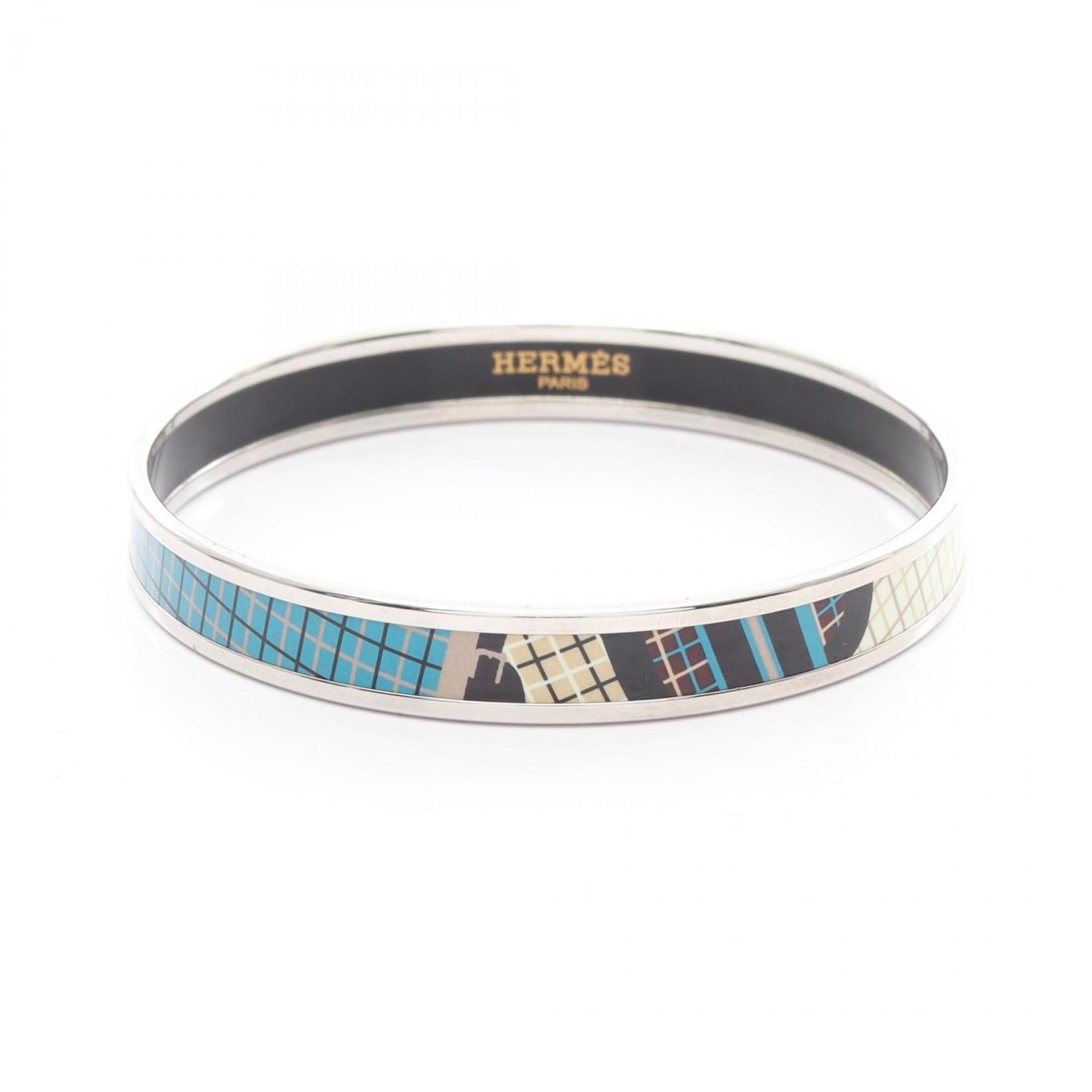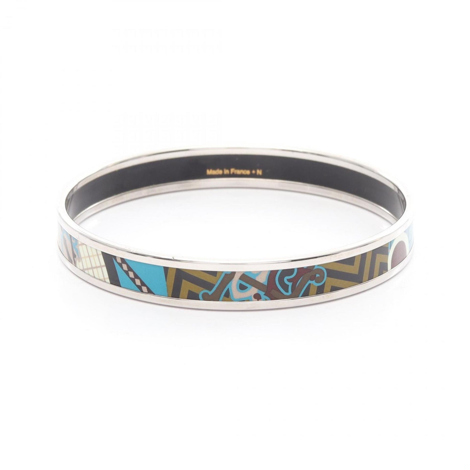 Hermes Hermès enamel PM bangle in stainless steel and cloisonné, available silver multicolor.