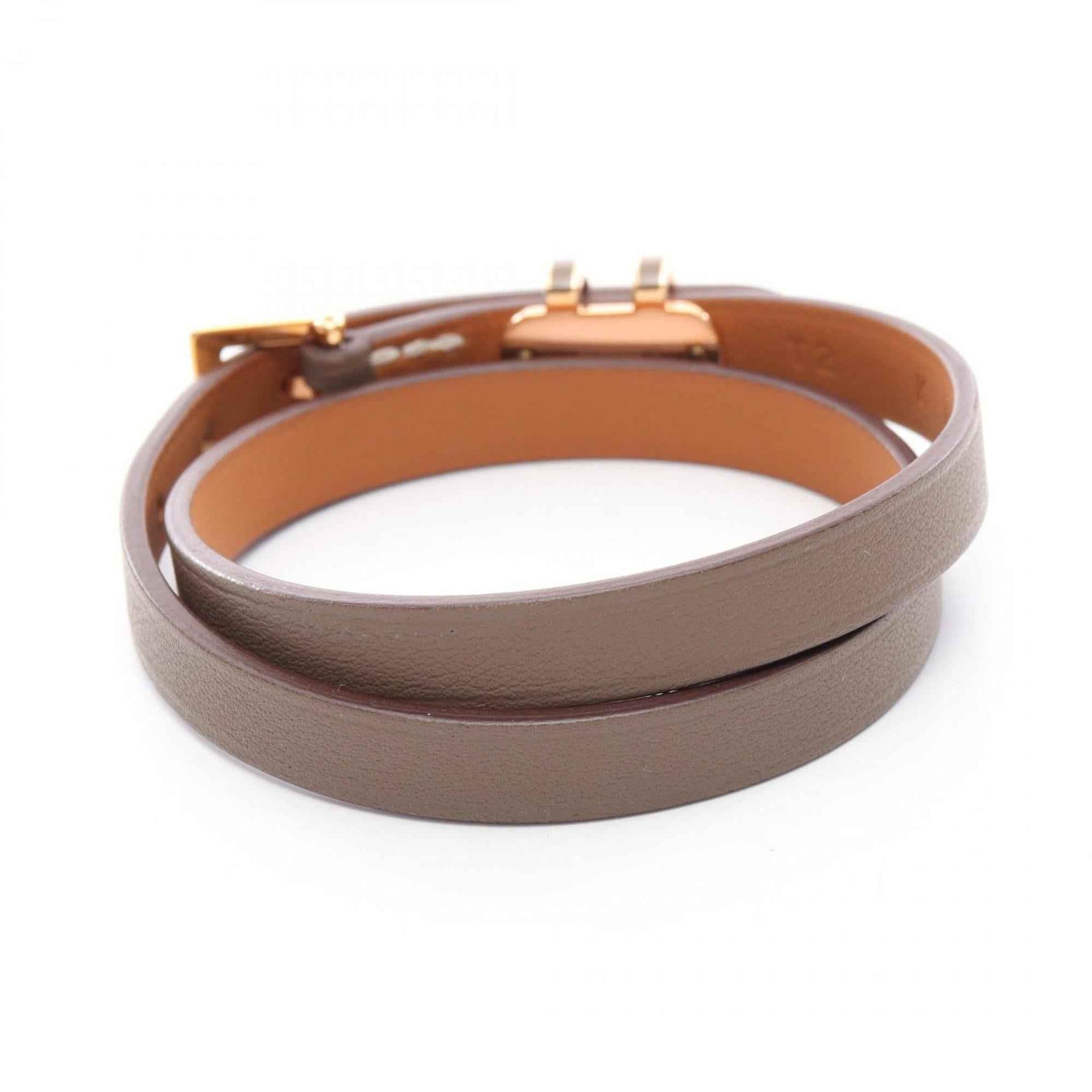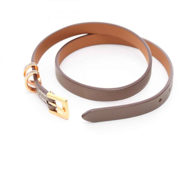 Hermes Hermès Pop H Double Tour Bracelet, Gold-Plated, Swift Leather, Brown, for Women