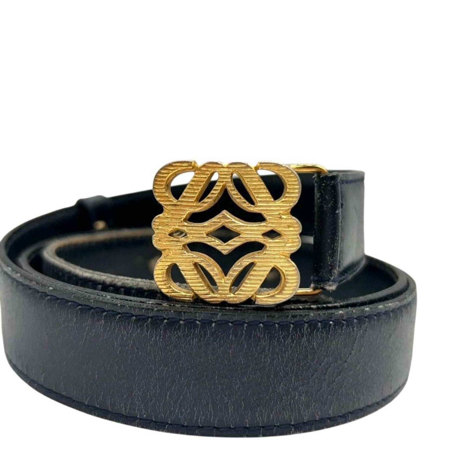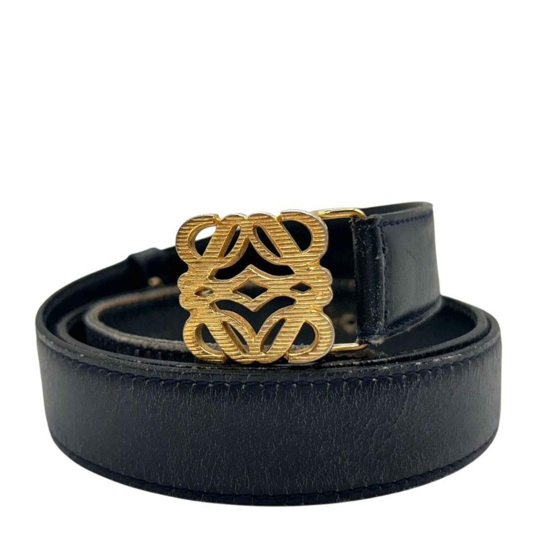 LOEWE Leather Belt, Navy, Anagram Logo, Gold Hardware, px-3