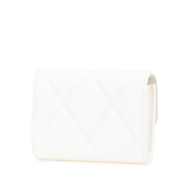 CHANEL 19 Matelasse Tri-fold Wallet in White Lambskin for Women