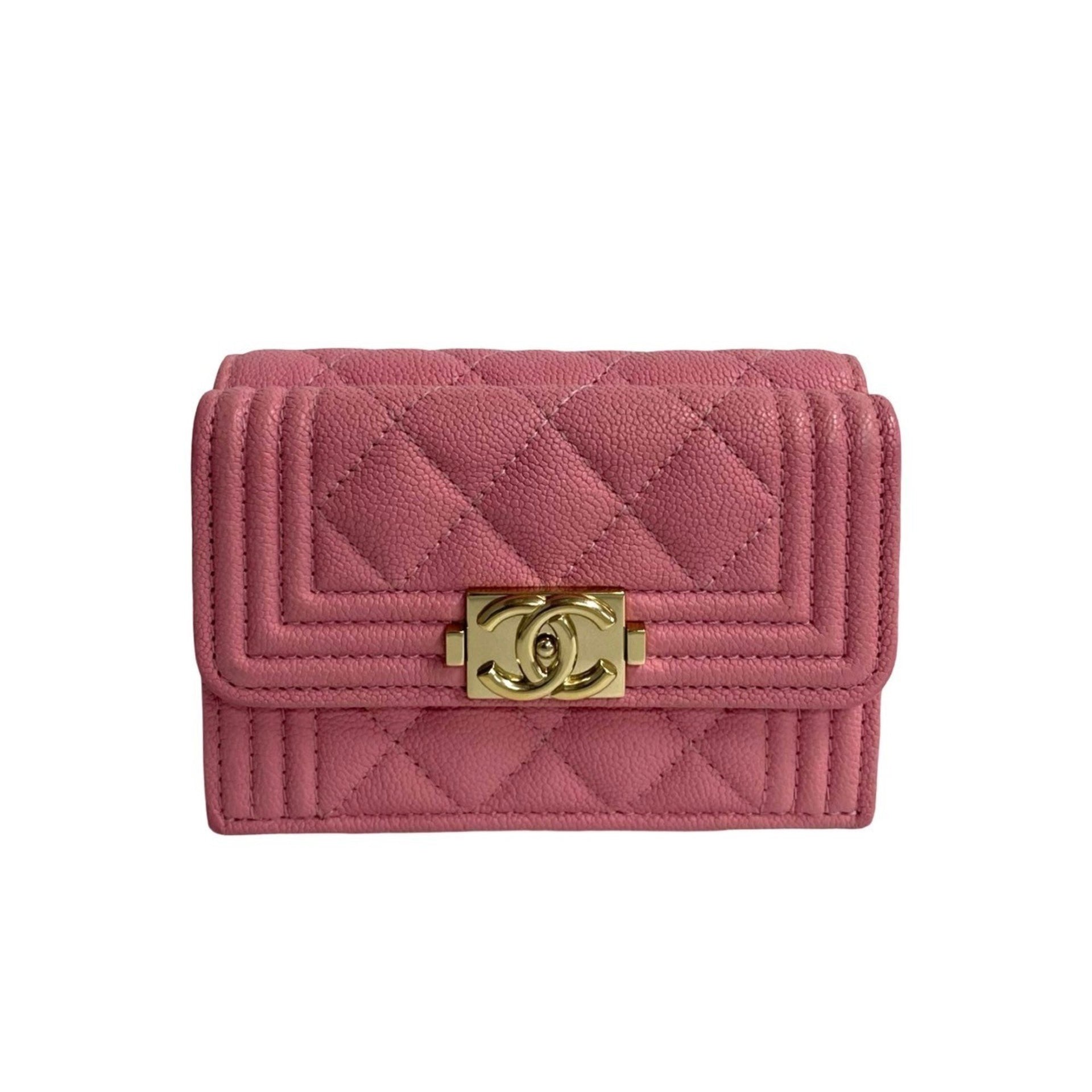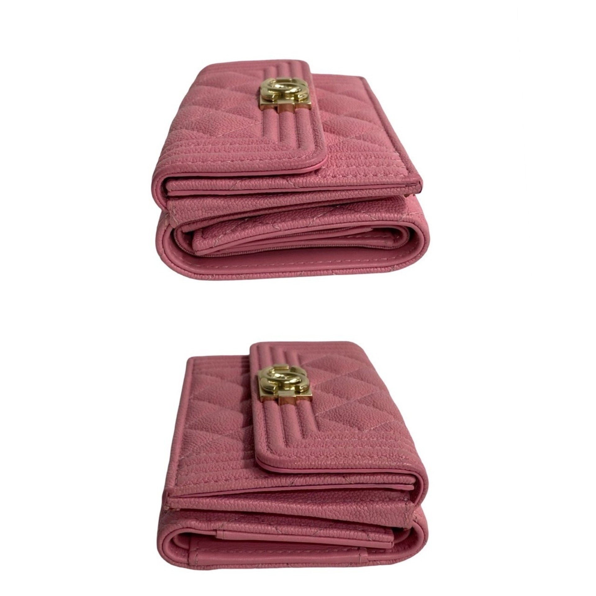 CHANEL Boy Chanel Caviar Leather Tri-fold Wallet, Pink, 77413