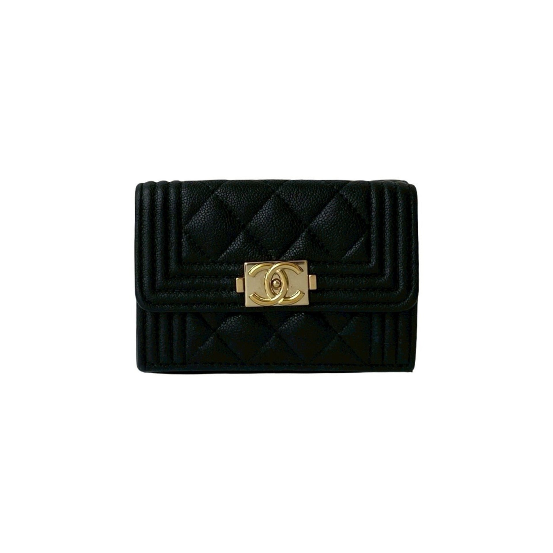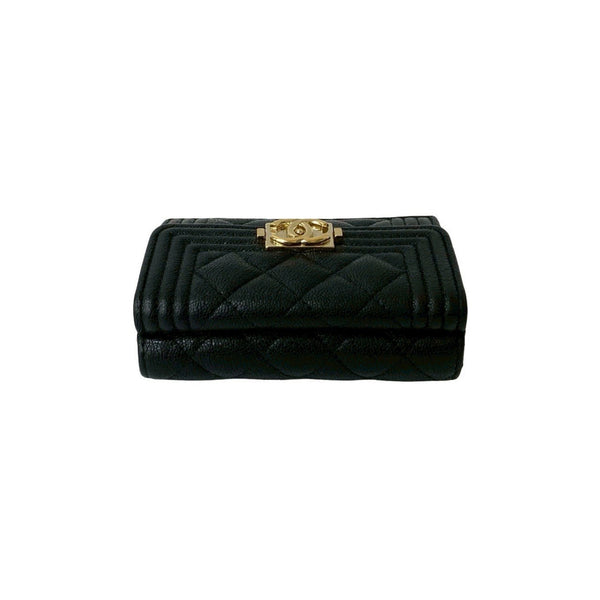 CHANEL Boy Chanel Coco Mark Caviar Leather Tri-fold Mini Wallet Black 83106