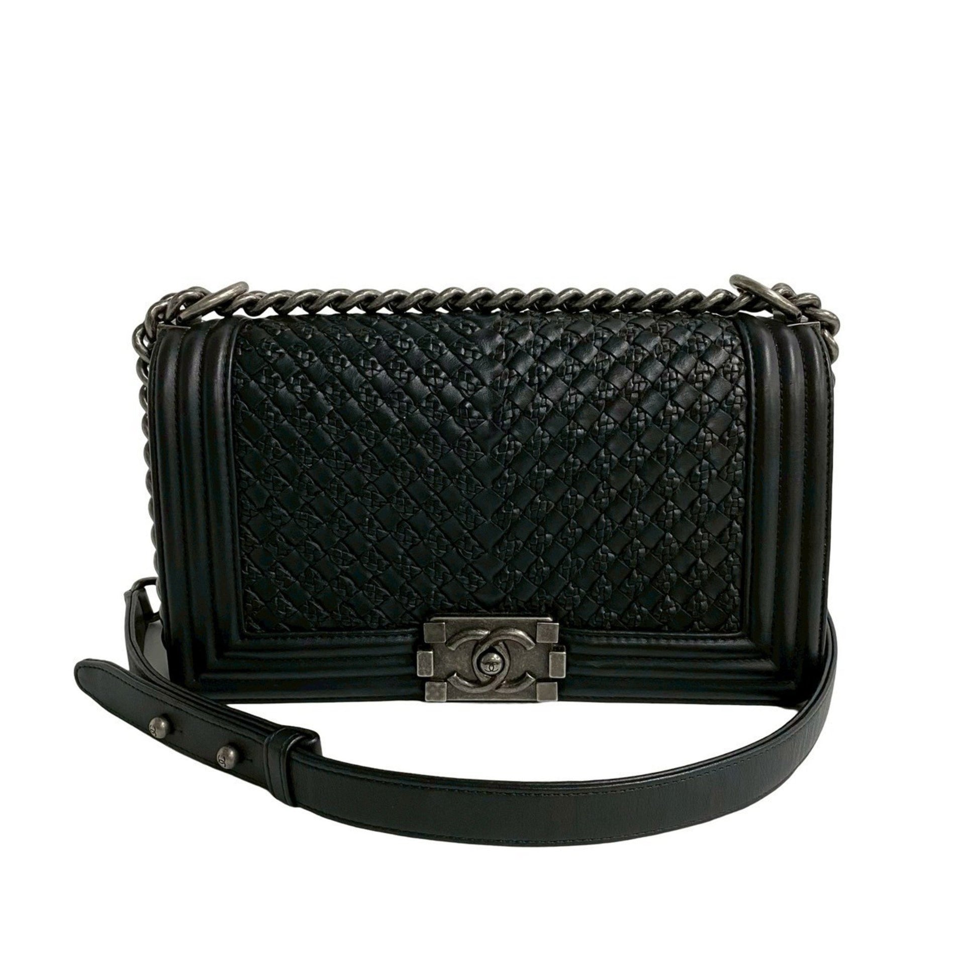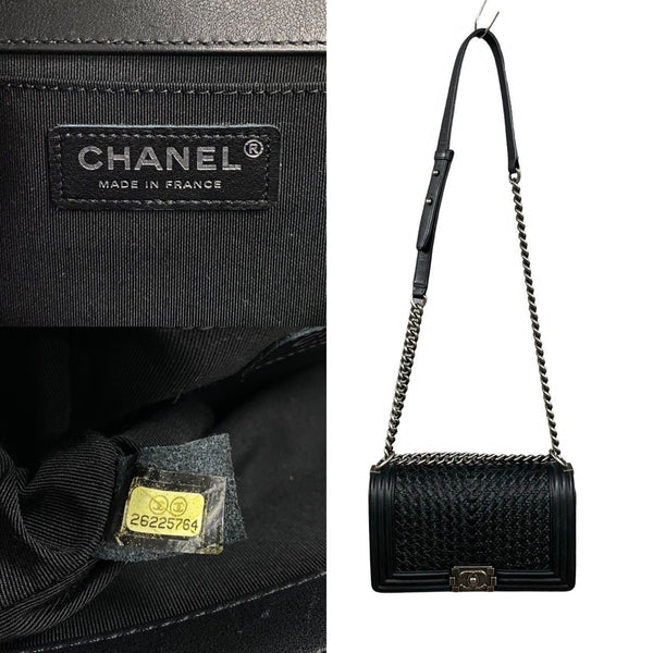 CHANEL Boy Chanel Coco Mark Lambskin Genuine Leather Chain Shoulder Bag Black 75722