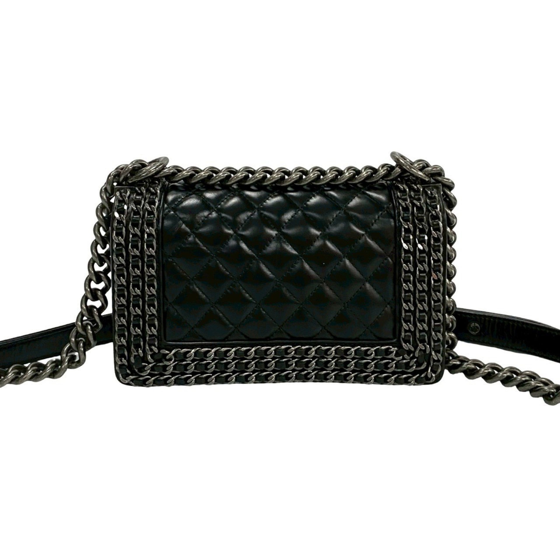 CHANEL Boy Chanel Coco Mark Leather Wrinkled Genuine Chain Shoulder Bag Black 85661