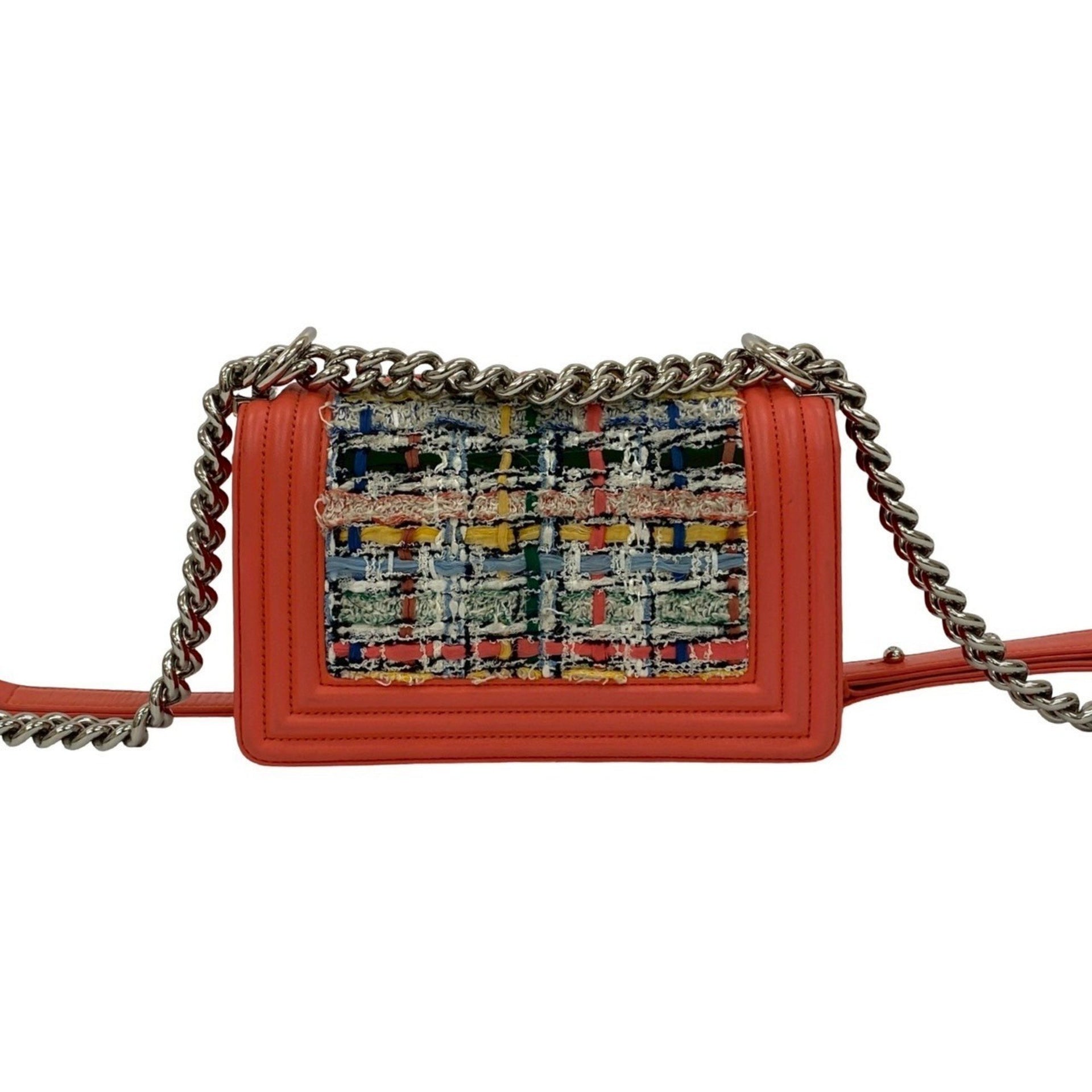 CHANEL Boy Chanel Leather Tweed Shoulder Bag in Pink and Multicolor (18464)
