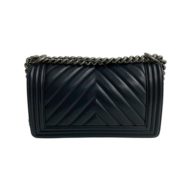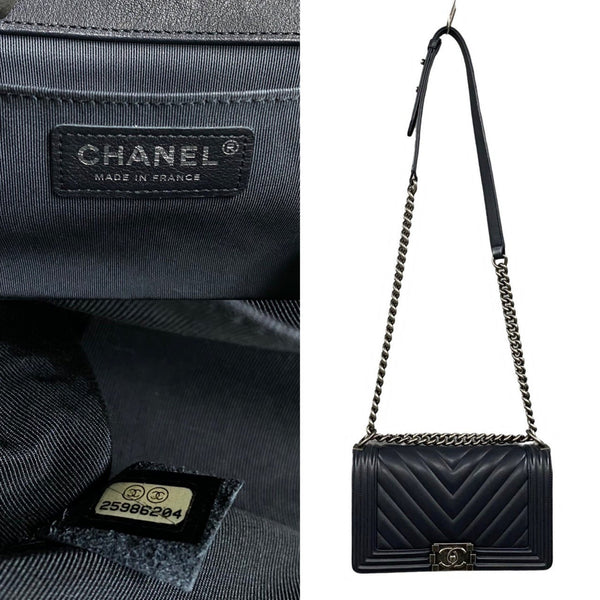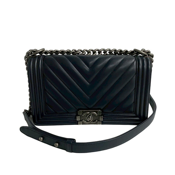 CHANEL Boy Chanel Restiche Coco Mark Leather Shoulder Bag, Navy Blue, 75385