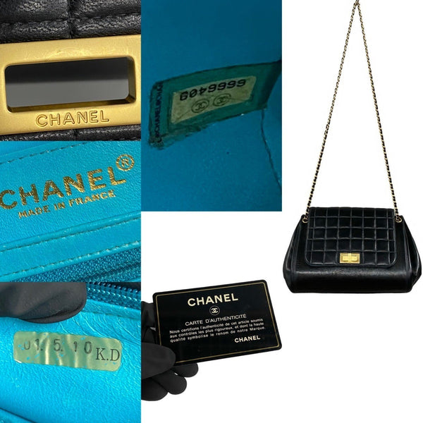 CHANEL Chocobar 2.55 Lambskin Leather Chain Shoulder Bag, Black, 34451
