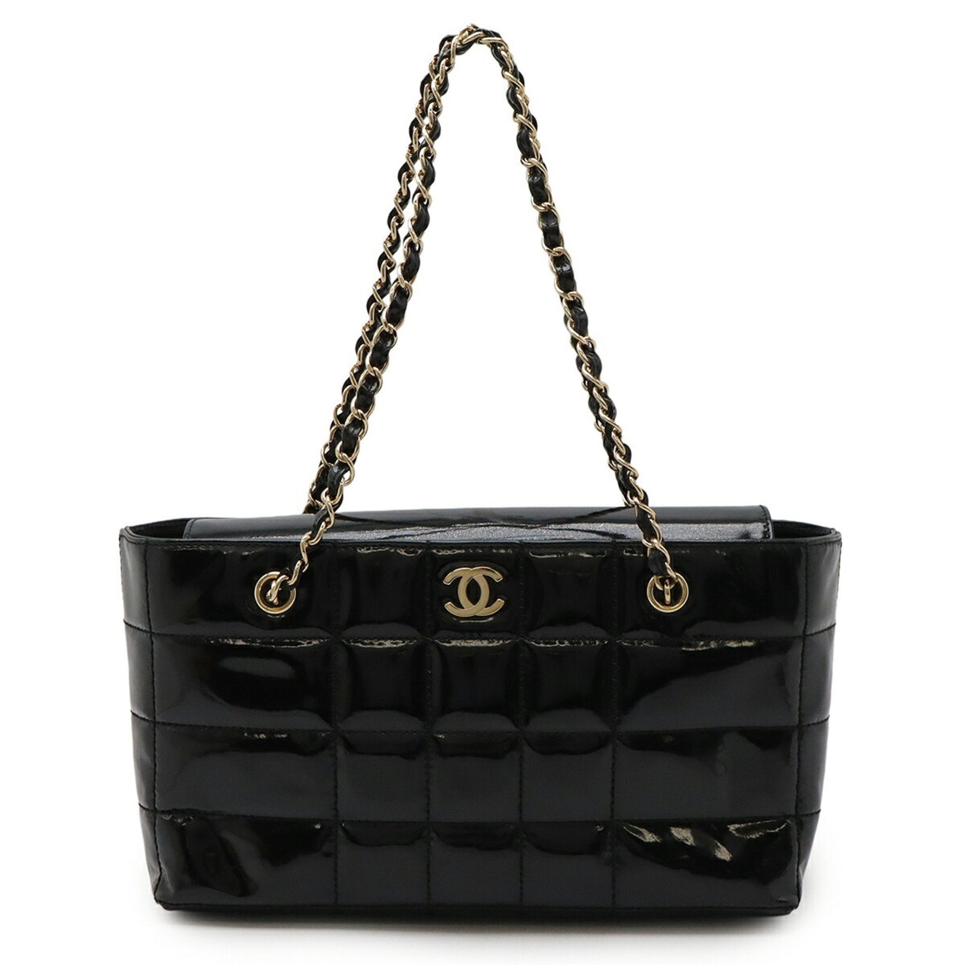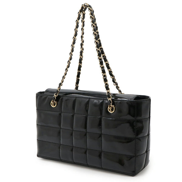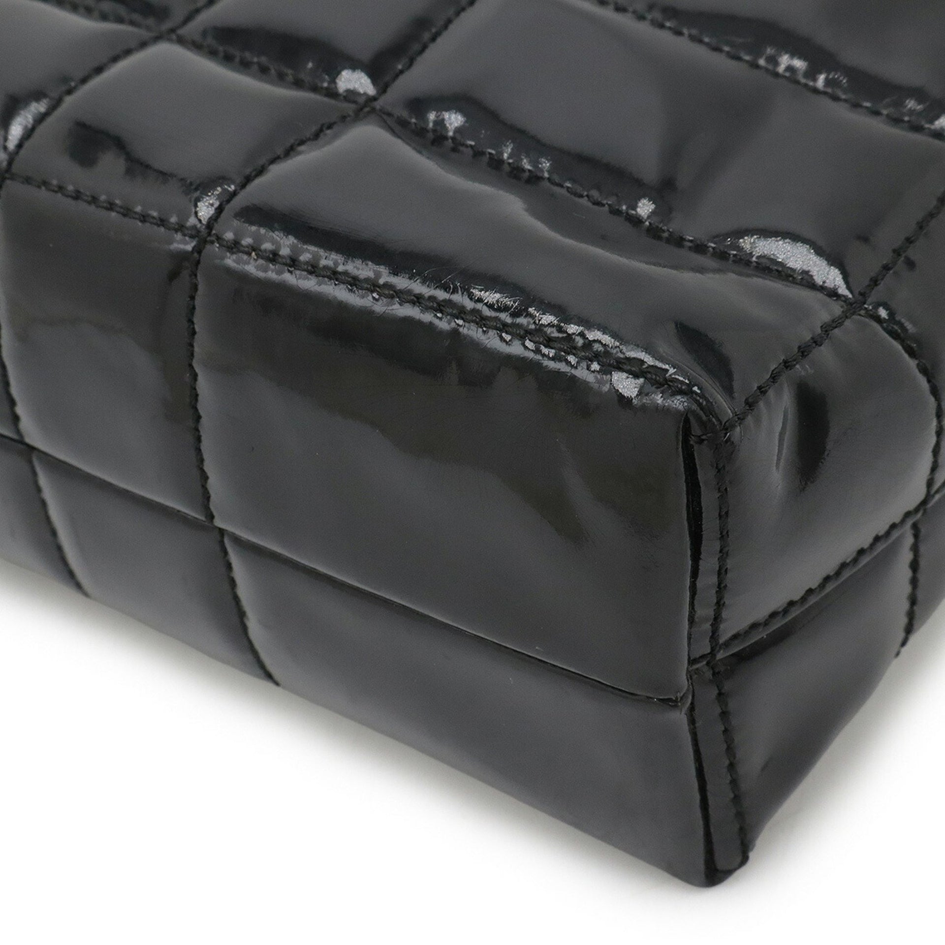 CHANEL Chocolate Bar Coco Mark Chain Shoulder Bag in Enamel and Patent Leather, Black, A18158