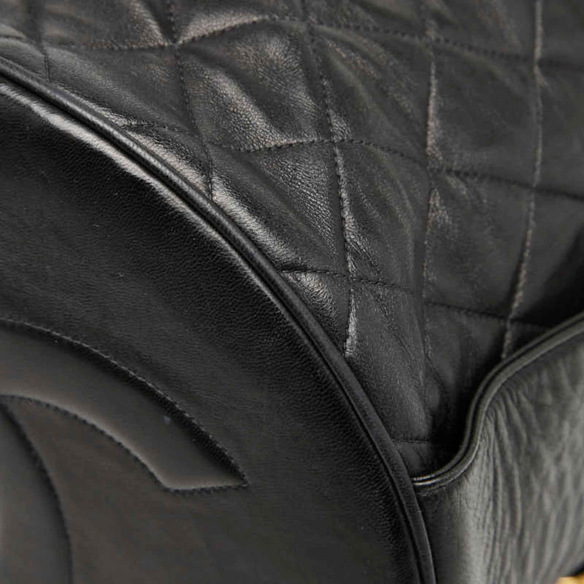 CHANEL Coco Mark Matelasse Drawstring Chain Shoulder Bag in Black Lambskin for Women