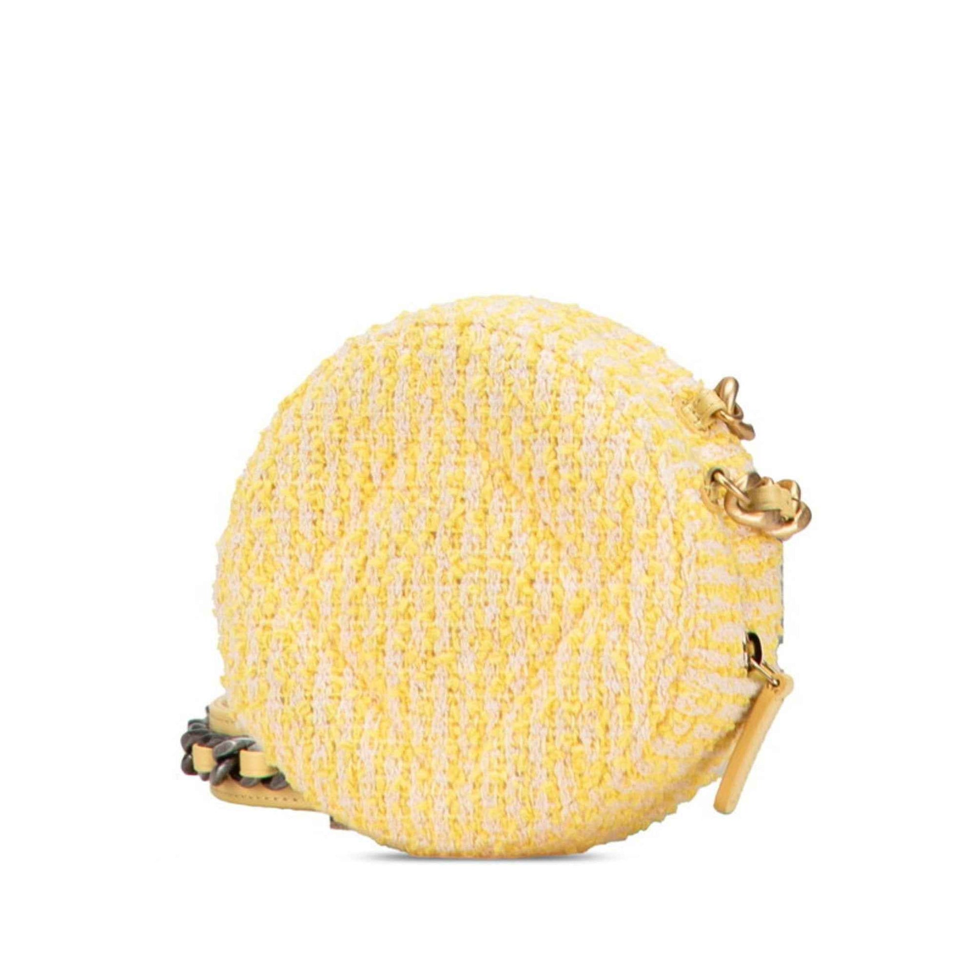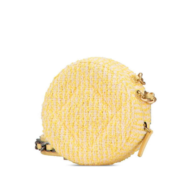 Chanel Coco Mark Round Chain Shoulder Bag in Yellow Gold Tweed and Leather for Women
