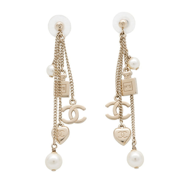 CHANEL Coco Mark Swing Perfume Bottle Heart Faux Pearl Metal Earrings B18B