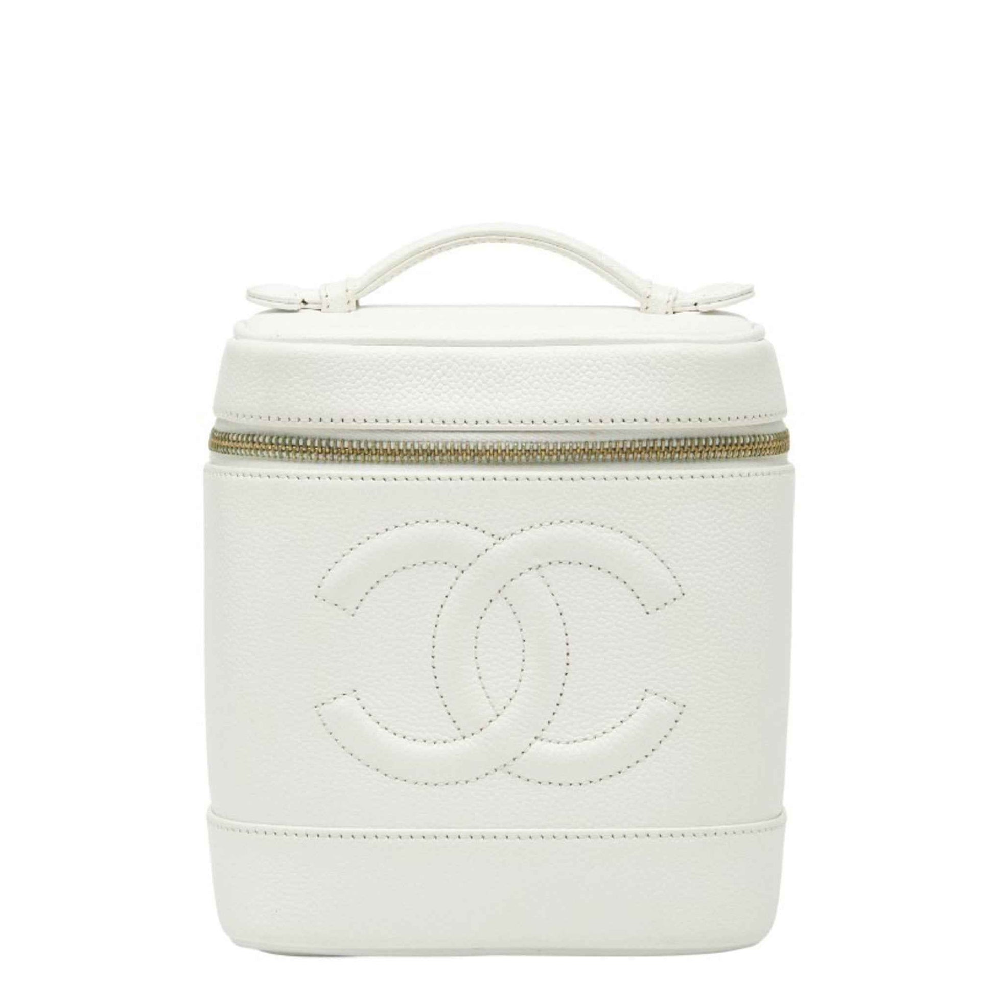 Chanel Coco Mark Vanity Bag Handbag White Caviar Skin Women\'s CHANEL